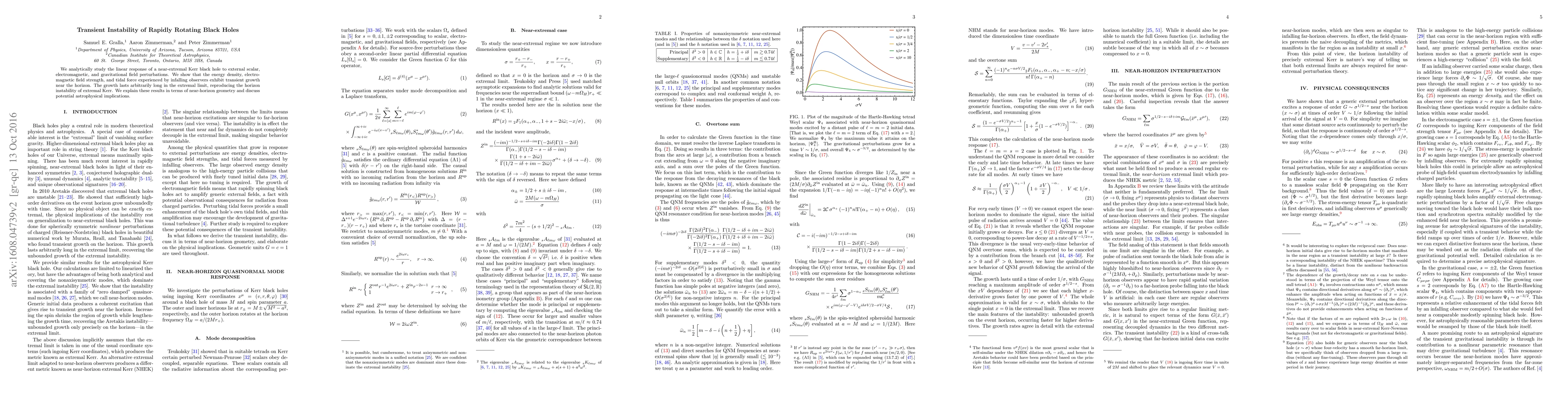 We analytically study the linear response of a near-extremal Kerr black hole to external scalar, electromagnetic, and gravitational field perturbations. We show that the energy density, electromagnetic field strength, and tidal force experienced by infalling observers exhibit transient growth near the horizon. The growth lasts arbitrarily long in the extremal limit, reproducing the horizon instability of extremal Kerr. We explain these results in terms of near-horizon geometry and discuss potential astrophysical implications.