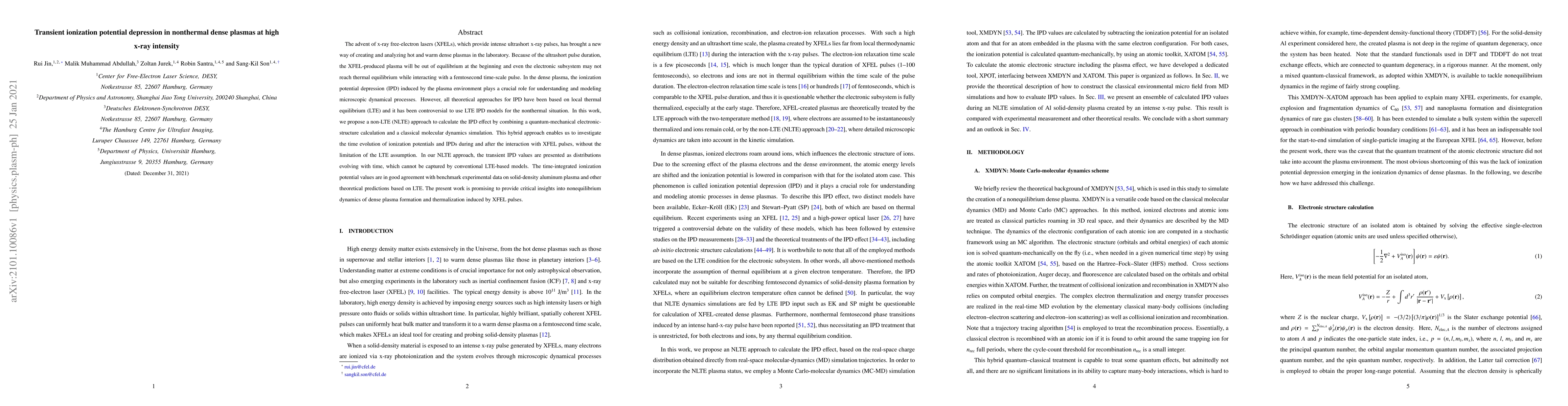 This paper proposes a non-LTE approach to calculate ionization potential depression in nonthermal dense plasmas created by XFEL pulses, combining quantum-mechanical calculations and classical molecular dynamics. The transient IPD values are shown as time-evolving distributions, offering insights into nonequilibrium dynamics in dense plasma formation.