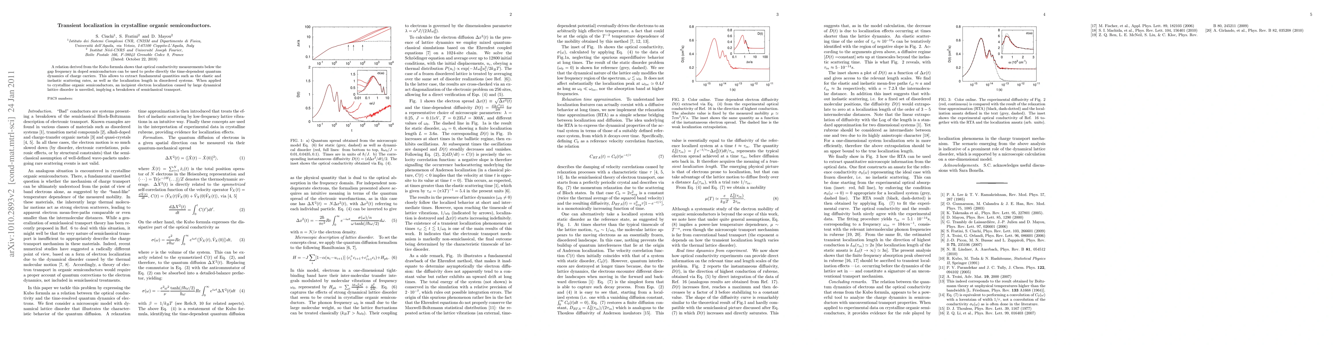This study reveals that optical conductivity measurements in doped crystalline organic semiconductors can elucidate the time-dependent quantum dynamics of charge carriers, showing an incipient electron localization due to lattice disorder that disrupts semiclassical transport.