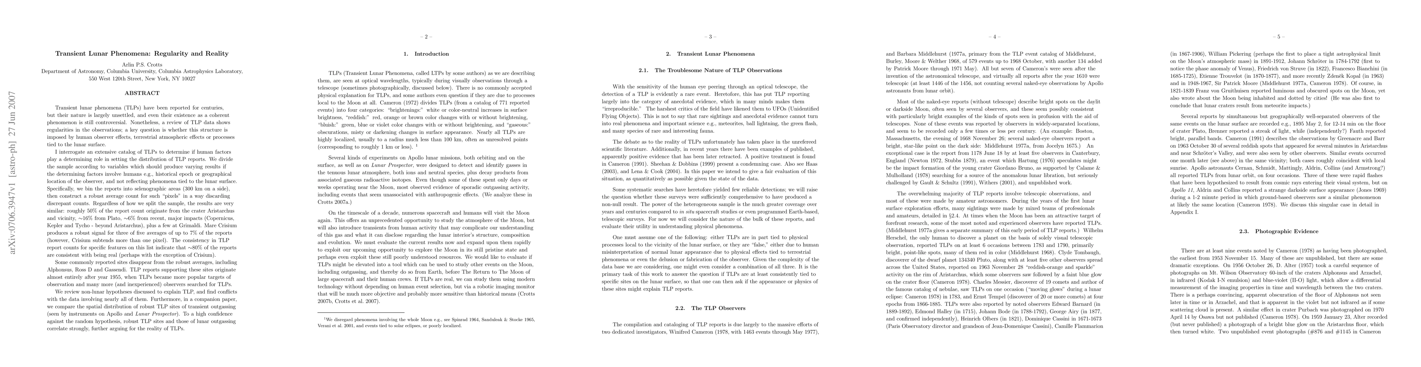 This paper investigates the regularity of transient lunar phenomena (TLP) reports and assesses whether human or terrestrial factors influence these observations. Despite variations in observer location and time, specific lunar features consistently receive the majority of TLP reports, suggesting that >80% of TLPs are likely real, with notable correlation between robust TLP sites and lunar outgassing.