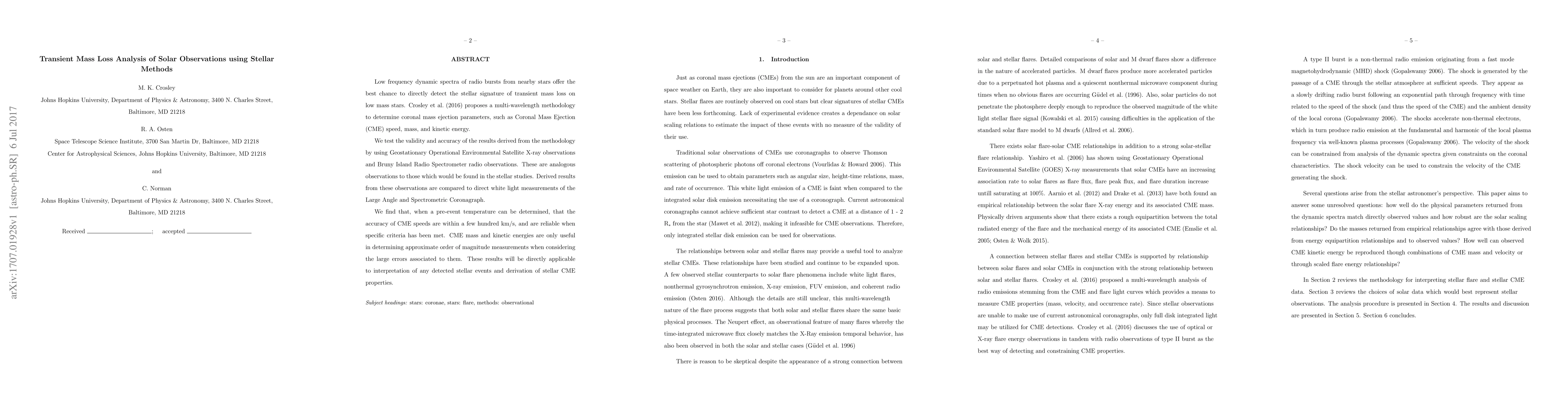 Researchers develop a method to analyze solar observations and detect transient mass loss on low-mass stars with high accuracy, offering new insights into stellar coronal mass ejections.