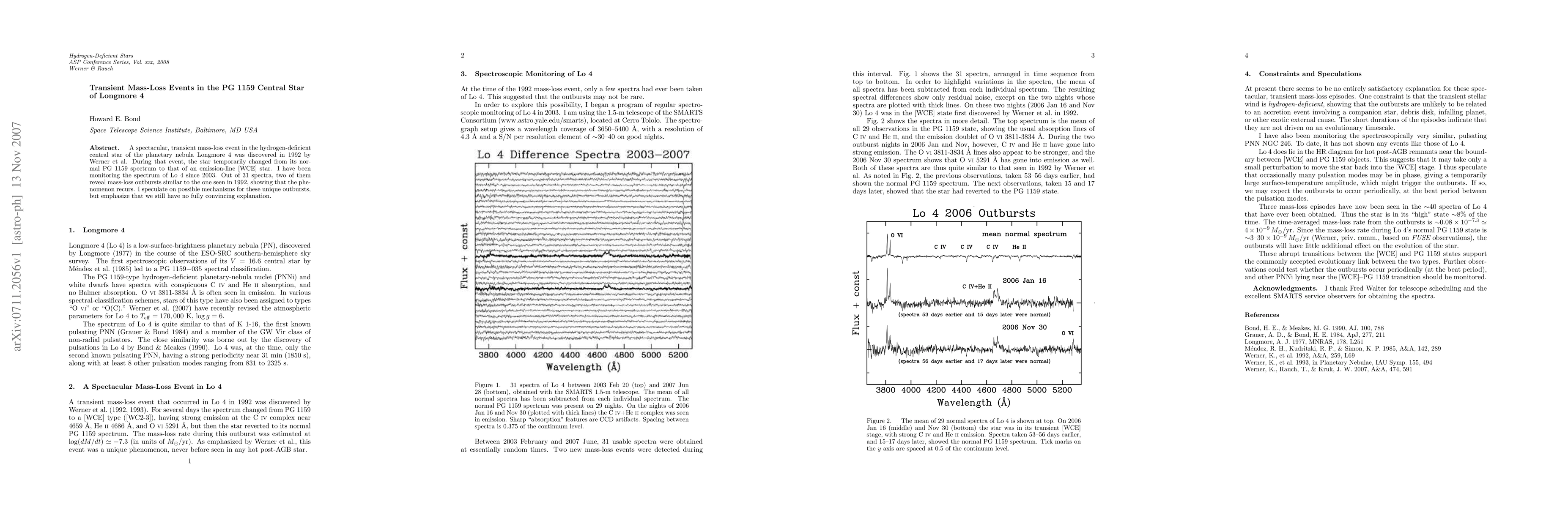 A spectacular, transient mass-loss event in the hydrogen-deficient central star of the planetary nebula Longmore 4 was discovered in 1992 by Werner et al. During that event, the star temporarily changed from its normal PG 1159 spectrum to that of an emission-line [WCE] star. I have been monitoring the spectrum of Lo 4 since 2003. Out of 31 spectra, two of them reveal mass-loss outbursts similar to the one seen in 1992, showing that the phenomenon recurs. I speculate on possible mechanisms for these unique outbursts, but emphasize that we still have no fully convincing explanation.