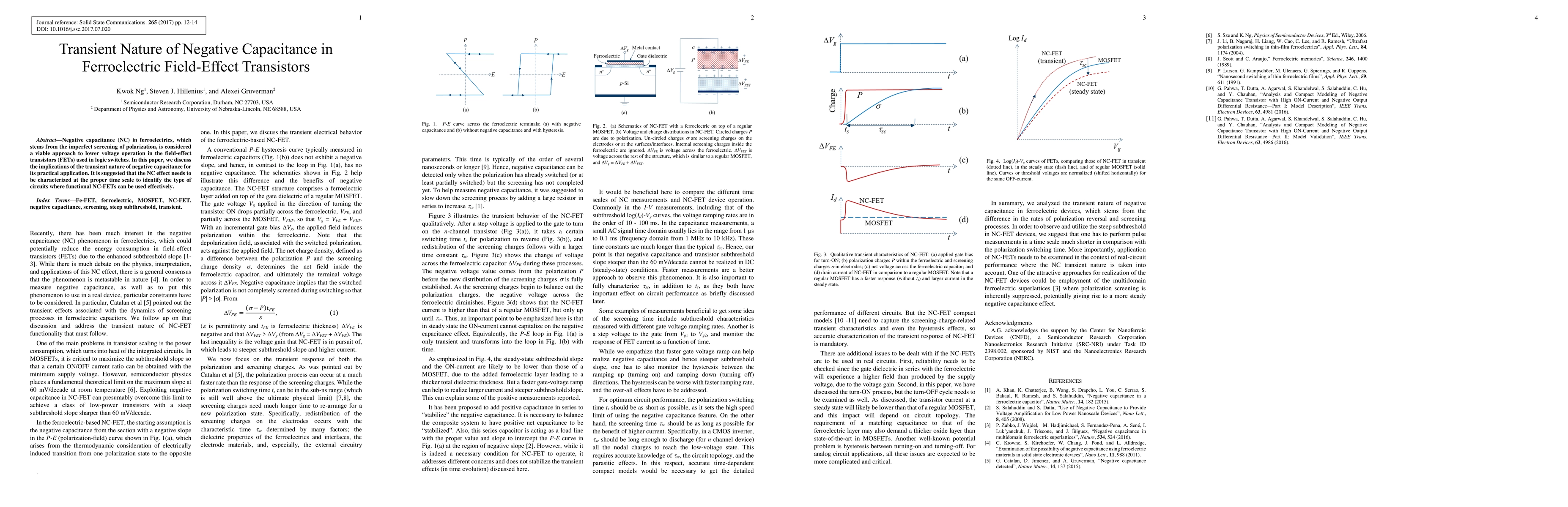 This paper examines the transient nature of negative capacitance in ferroelectric field-effect transistors, highlighting its implications for practical applications. It emphasizes the need to characterize the NC effect on the appropriate time scale to identify suitable circuits for effective use of functional NC-FETs.