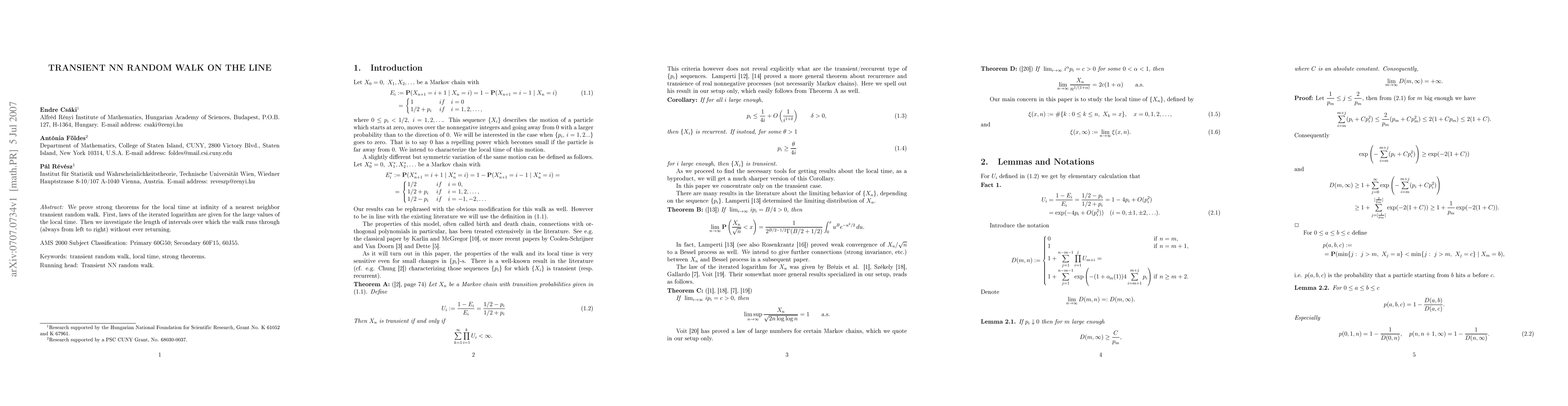 Summary: This paper establishes strong theorems for the local time at infinity of a transient nearest neighbor random walk, proving laws of the iterated logarithm for large local times and analyzing the length of intervals where the walk moves consistently from left to right without returning.
