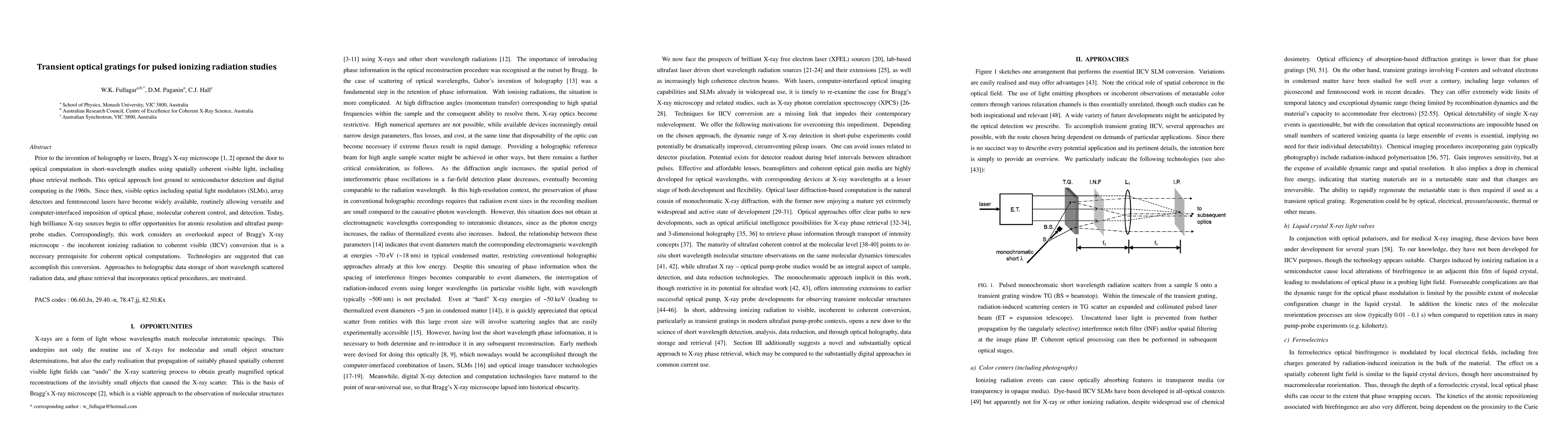 Prior to the invention of holography or lasers, Bragg's X-ray microscope opened the door to optical computation in short-wavelength studies using spatially coherent visible light, including phase retrieval methods. This optical approach lost ground to semiconductor detection and digital computing in the 1960s. Since then, visible optics including spatial light modulators (SLMs), array detectors and femtosecond lasers have become widely available, routinely allowing versatile and computer-interfaced imposition of optical phase, molecular coherent control, and detection. Today, high brilliance X-ray sources begin to offer opportunities for atomic resolution and ultrafast pump-probe studies. Correspondingly, this work considers an overlooked aspect of Bragg's X-ray microscope - the incoherent ionizing radiation to coherent visible (IICV) conversion that is a necessary prerequisite for coherent optical computations. Technologies are suggested that can accomplish this conversion. Approaches to holographic data storage of short wavelength scattered radiation data, and phase retrieval that incorporates optical procedures, are motivated.