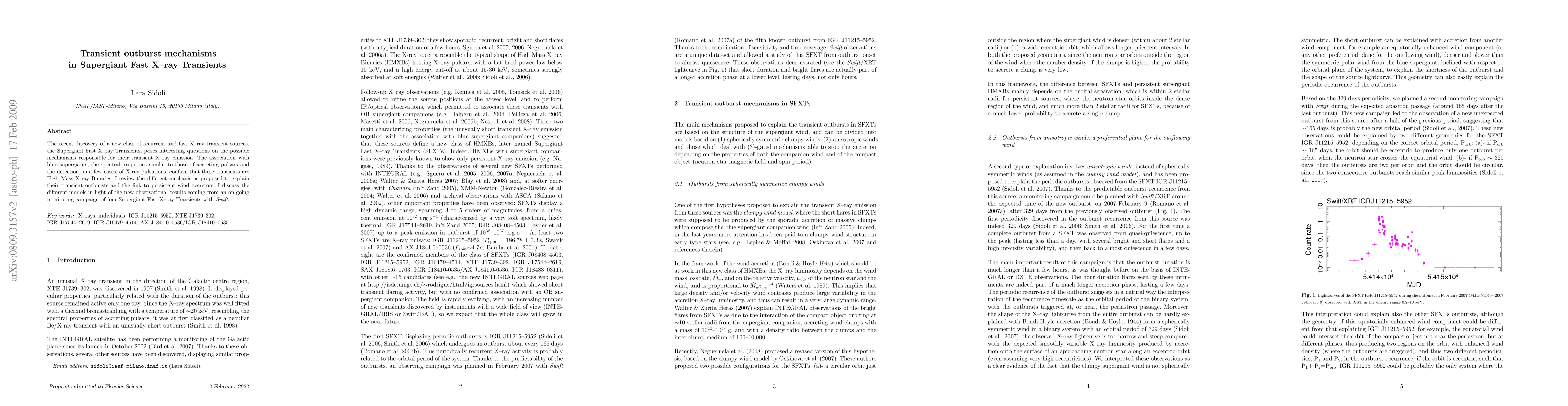 This paper reviews mechanisms for transient outbursts in Supergiant Fast X-ray Transients, linking them to High Mass X-ray Binaries and persistent wind accretors, and evaluates these models against new observational data from a Swift monitoring campaign.