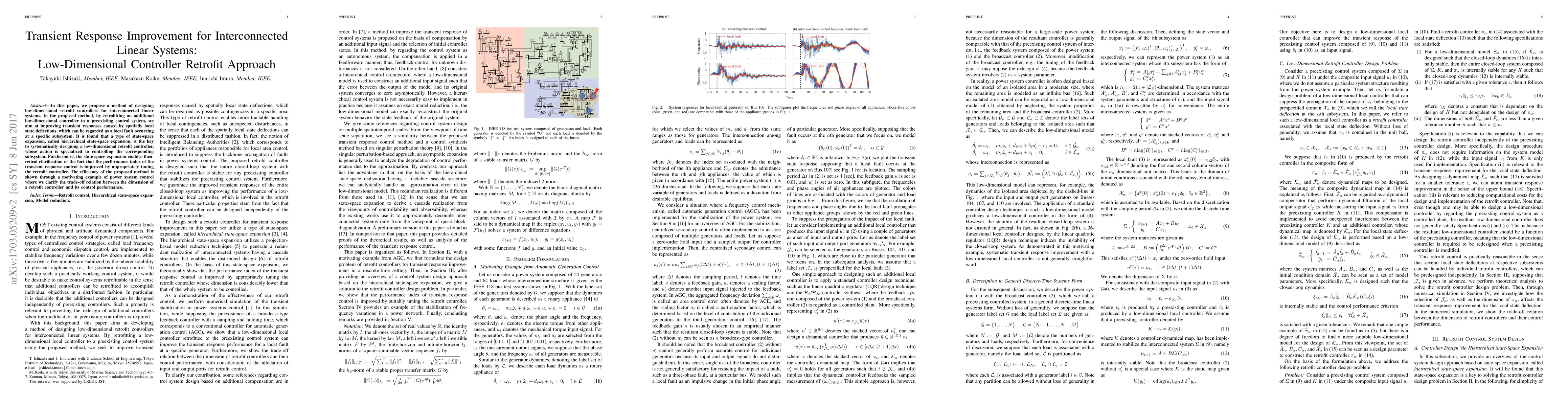 This paper proposes a method for designing low-dimensional retrofit controllers to improve transient responses in interconnected linear systems, using hierarchical state-space expansion. The approach demonstrates improved performance through a power system control example, highlighting the trade-off between retrofit controller dimension and control effectiveness.