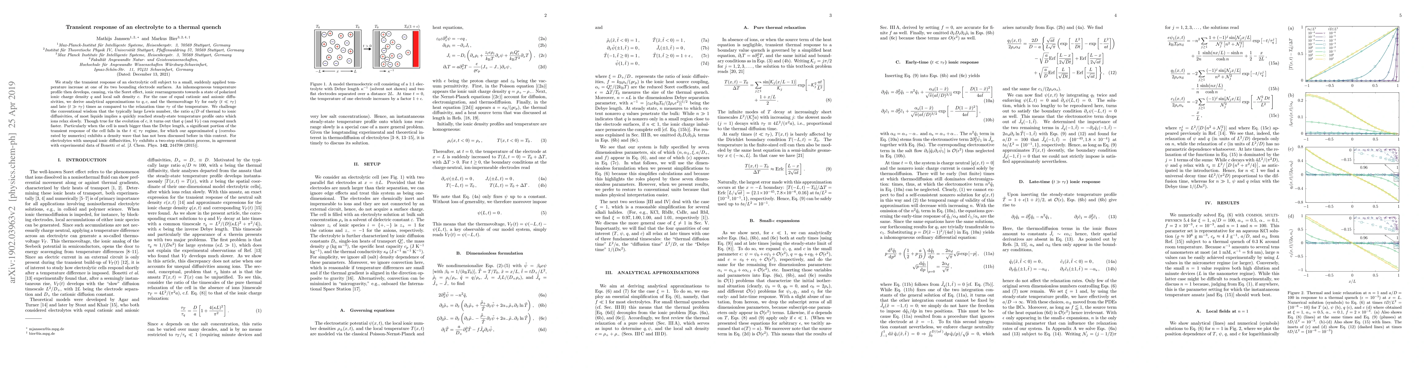This paper investigates the transient ionic response in an electrolytic cell subjected to a sudden temperature increase, revealing that the ionic charge density and thermovoltage can respond faster than expected, especially in large cells. Analytical approximations show a density wave for early times, challenging the notion that ions relax slowly to a steady-state temperature profile.