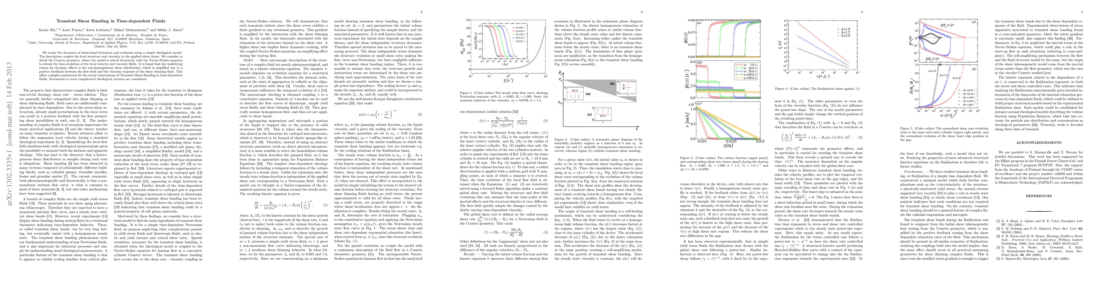 This paper investigates the dynamics of shear-band formation in time-dependent fluids using a rheological model that links local structure and viscosity to shear stress. The study reveals that transient shear banding arises from non-homogeneous shear distribution amplified by feedback between flow and viscosity in shear thinning fluids.