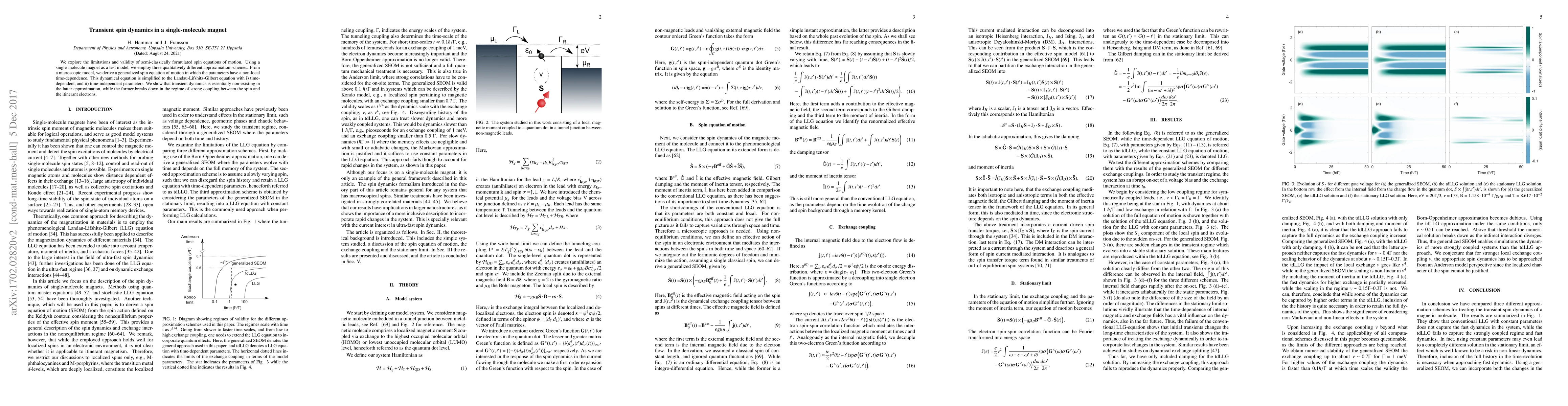 This paper investigates the transient spin dynamics in a single-molecule magnet, comparing three approximation schemes derived from a microscopic model. The study finds that while time-dependent parameters allow for transient dynamics, time-independent parameters fail to capture it, and strong spin-electron coupling causes the approximations to break down.