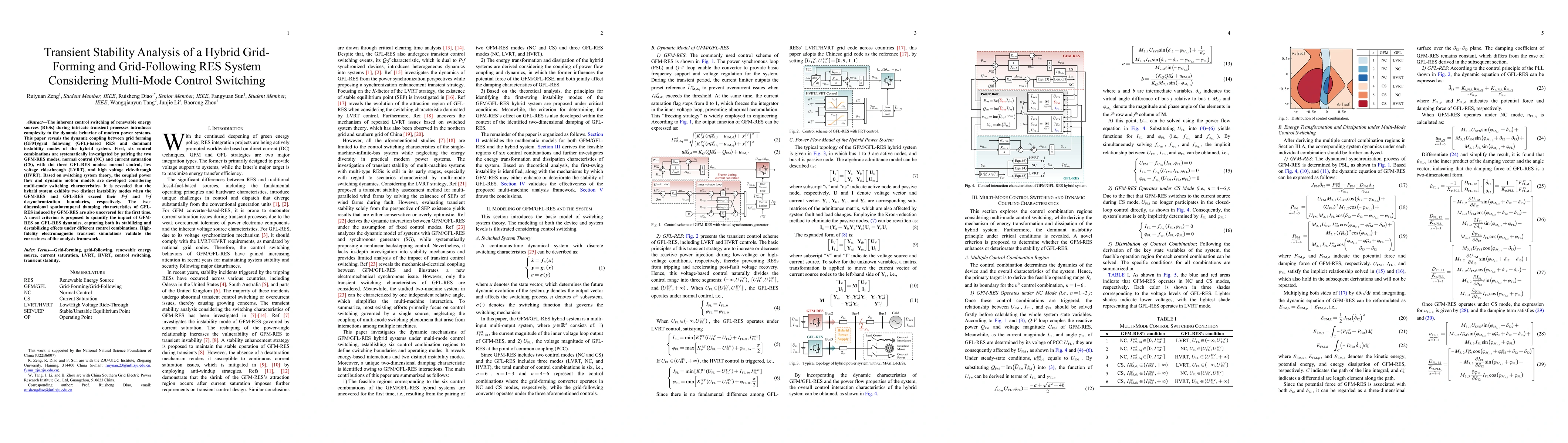 The inherent control switching of renewable energy sources (RESs) during intricate transient processes introduces complexity to the dynamic behavior of modern power systems. This paper reveals the dynamic coupling between grid forming (GFM)/grid following (GFL)-based RES and dominant instability modes of the hybrid system. First, six control combinations are systematically investigated by pairing the two GFM-RES modes, normal control (NC) and current saturation (CS), with the three GFL-RES modes: normal control, low voltage ride-through (LVRT), and high voltage ride-through (HVRT). Based on switching system theory, the coupled power flow and dynamic motion models are developed considering multi-mode switching characteristics. It is revealed that the hybrid system exhibits two distinct instability modes when the GFM-RES and GFL-RES exceed their P-f and V-f desynchronization boundaries, respectively. The two-dimensional spatiotemporal damping characteristics of GFL-RES induced by GFM-RES are also uncovered for the first time. A novel criterion is proposed to quantify the impact of GFM-RES on GFL-RES dynamics, capturing both its stabilizing and destabilizing effects under different control combinations. High-fidelity electromagnetic transient simulations validate the correctness of the analysis framework.