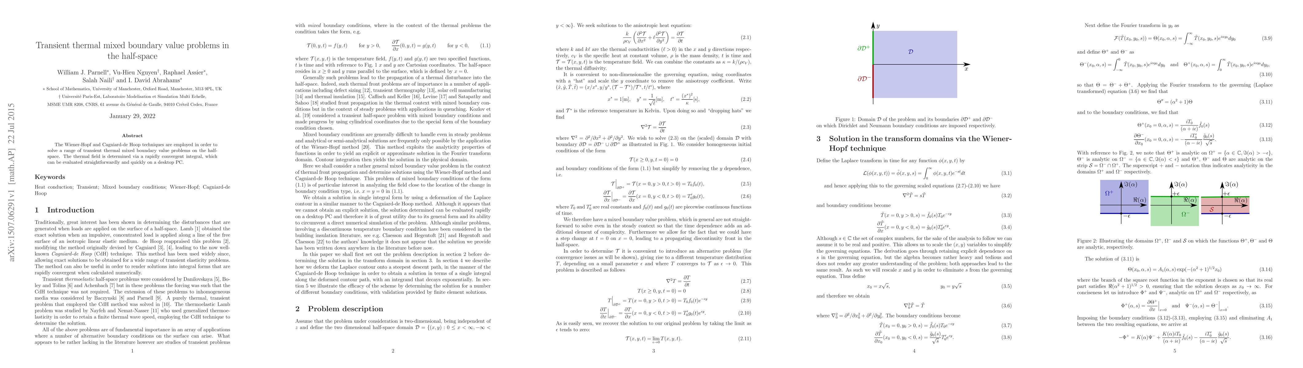 This paper utilizes the Wiener-Hopf and Cagniard-de Hoop methods to solve transient thermal mixed boundary value problems in a half-space, providing a rapidly convergent integral solution that can be efficiently computed on standard computing hardware.