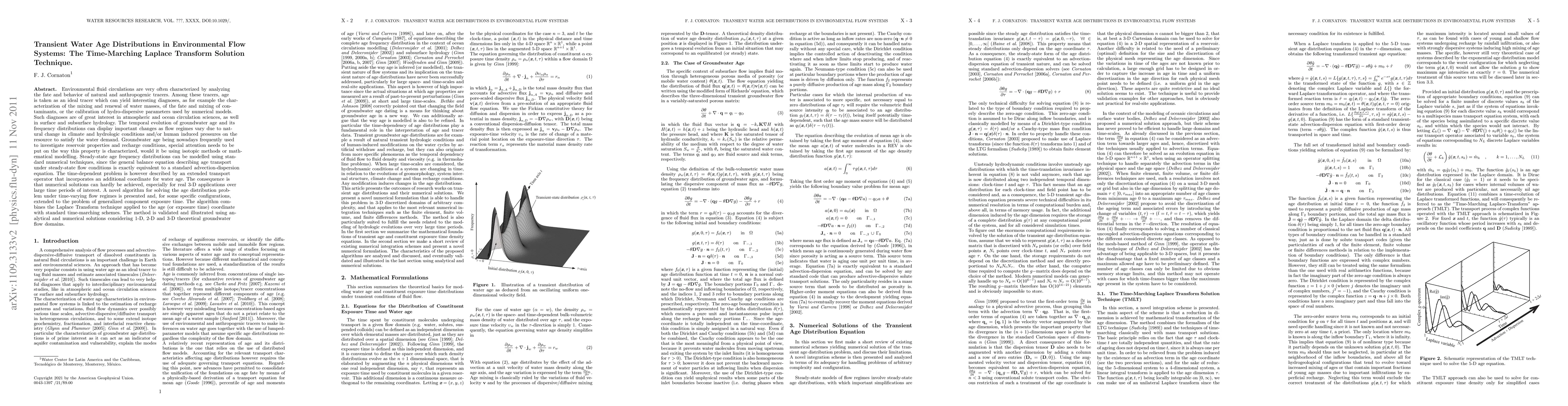 Environmental fluid circulations are very often characterized by analyzing the fate and behavior of natural and anthropogenic tracers. Among these tracers, age is taken as an ideal tracer which can yield interesting diagnoses, as for example the characterization of the mixing and renewal of water masses, of the fate and mixing of contaminants, or the calibration of hydro-dispersive parameters used by numerical models. Such diagnoses are of great interest in atmospheric and ocean circulation sciences, as well in surface and subsurface hydrology. The temporal evolution of groundwater age and its frequency distributions can display important changes as flow regimes vary due to natural change in climate and hydrologic conditions and/or human induced pressures on the resource to satisfy the water demand. Steady-state age frequency distributions can be modelled using standard numerical techniques, since the general balance equation describing age transport under steady-state flow conditions is exactly equivalent to a standard advection-dispersion equation. The time-dependent problem is however described by an extended transport operator that incorporates an additional coordinate for water age. The consequence is that numerical solutions can hardly be achieved, especially for real 3-D applications over large time periods of interest. A novel algorithm for solving the age distribution problem under time-varying flow regimes is presented and, for some specific configurations, extended to the problem of generalized component exposure time. The algorithm combines the Laplace Transform technique applied to the age (or exposure time) coordinate with standard time-marching schemes. The method is validated and illustrated using analytical and numerical solutions considering 1-D, 2-D and 3-D theoretical groundwater flow domains.
