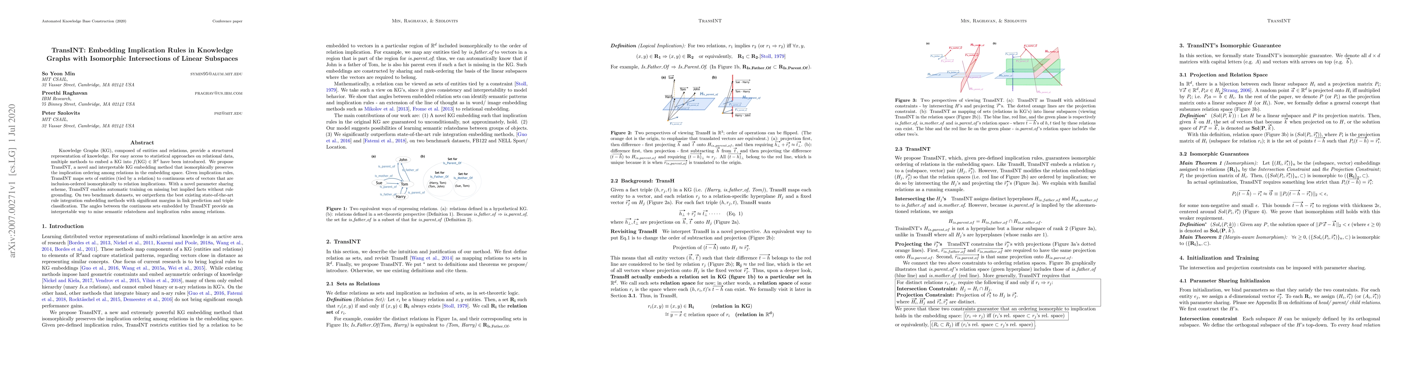 A new method called TransINT embeds knowledge graphs into high-dimensional spaces while preserving implication rules, outperforming existing methods on link prediction and triple classification tasks.
