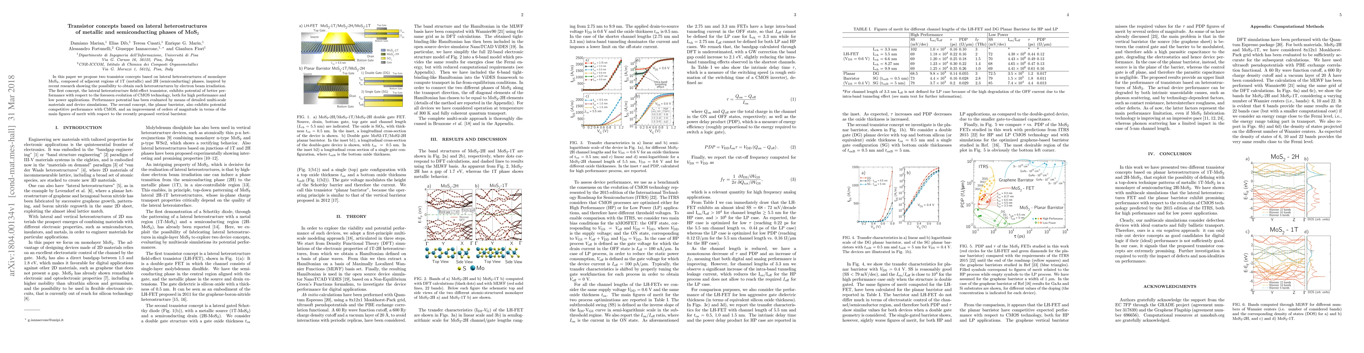 This paper proposes two transistor concepts utilizing lateral heterostructures of metallic 1T and semiconducting 2H phases of monolayer MoS$_2$, potentially offering superior performance for CMOS technology in both high-performance and low-power applications, as evaluated through detailed simulations.