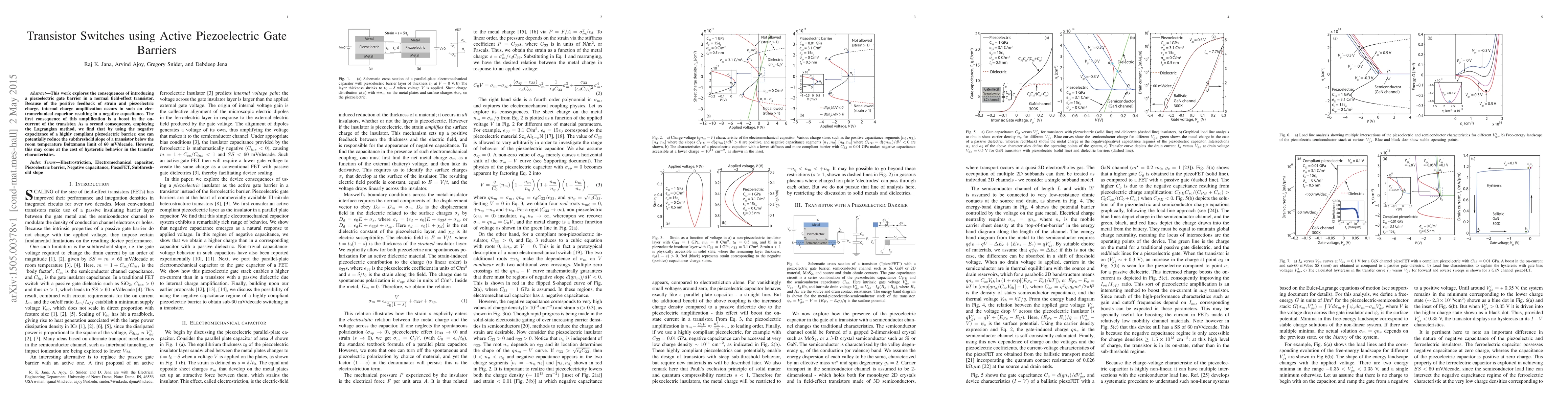 This paper investigates the use of piezoelectric gate barriers in field-effect transistors, revealing charge amplification and negative capacitance that boost on-current and potentially reduce the subthreshold slope below the Boltzmann limit, though with possible hysteretic behavior.