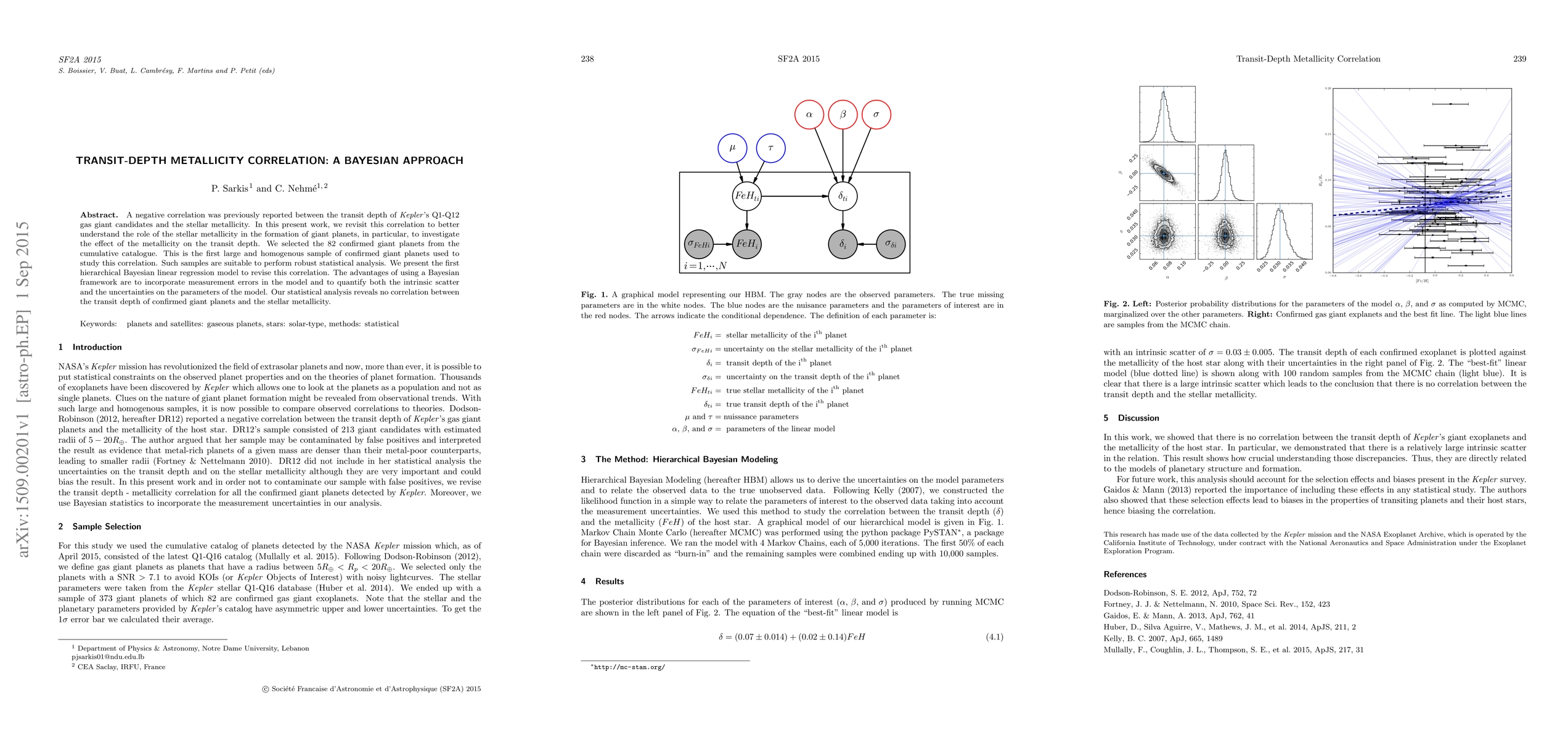 This study uses a hierarchical Bayesian linear regression model to re-examine the previously reported negative correlation between the transit depth of confirmed gas giant planets and stellar metallicity. Contrary to earlier findings, the analysis reveals no significant correlation, highlighting the importance of robust statistical methods in understanding planetary formation.