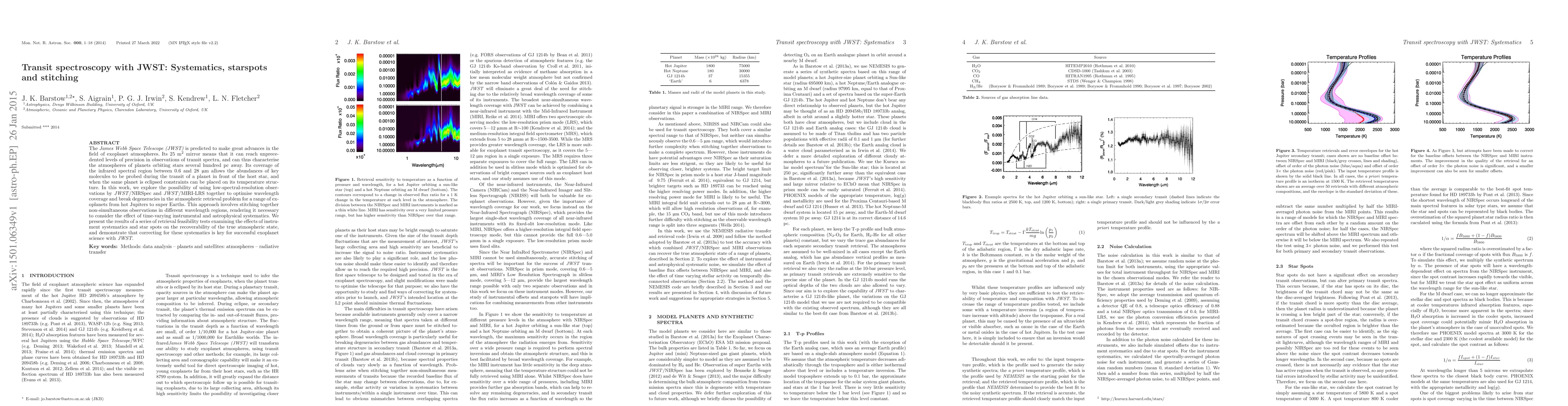 The James Webb Space Telescope (JWST) is predicted to make great advances in the field of exoplanet atmospheres. Its 25 m2 mirror means that it can reach unprecedented levels of precision in observations of transit spectra, and can thus characterise the atmospheres of planets orbiting stars several hundred pc away. Its coverage of the infrared spectral region between 0.6 and 28 {\mu}m allows the abundances of key molecules to be probed during the transit of a planet in front of the host star, and when the same planet is eclipsed constraints can be placed on its temperature structure. In this work, we explore the possibility of using low-spectral-resolution observations by JWST/NIRSpec and JWST/MIRI-LRS together to optimise wavelength coverage and break degeneracies in the atmospheric retrieval problem for a range of exoplanets from hot Jupiters to super Earths. This approach involves stitching together non-simultaneous observations in different wavelength regions, rendering it necessary to consider the effect of time-varying instrumental and astrophysical systematics. We present the results of a series of retrieval feasibility tests examining the effects of instrument systematics and star spots on the recoverability of the true atmospheric state, and demonstrate that correcting for these systematics is key for successful exoplanet science with JWST.
