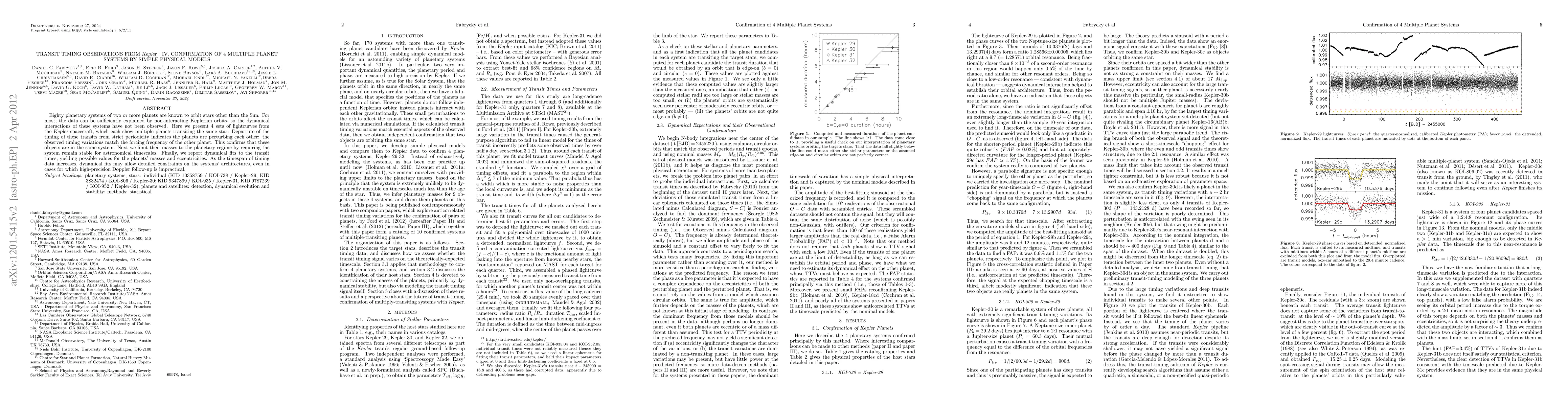 This paper confirms four multiple-planet systems using Kepler spacecraft transit timing observations, demonstrating that the planets perturb each other, and provides dynamical fits to determine their masses and eccentricities, suggesting future potential for detailed system architecture constraints.