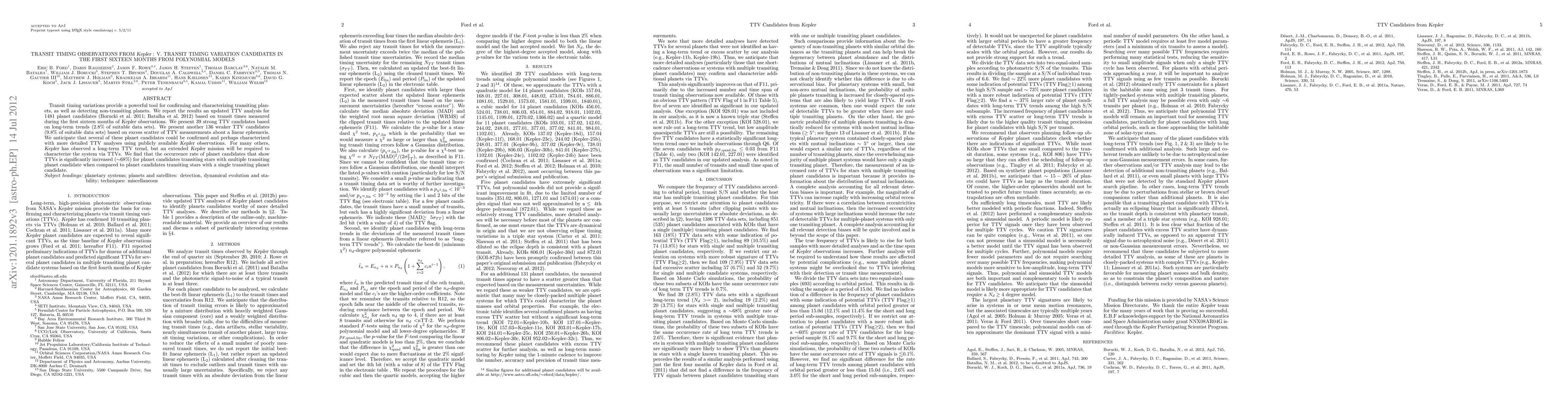 This paper reports an updated transit timing variation (TTV) analysis for 1481 planet candidates from Kepler's first sixteen months of observations, identifying 39 strong and 136 weaker TTV candidates. The study finds that TTVs are more common in systems with multiple transiting planets.