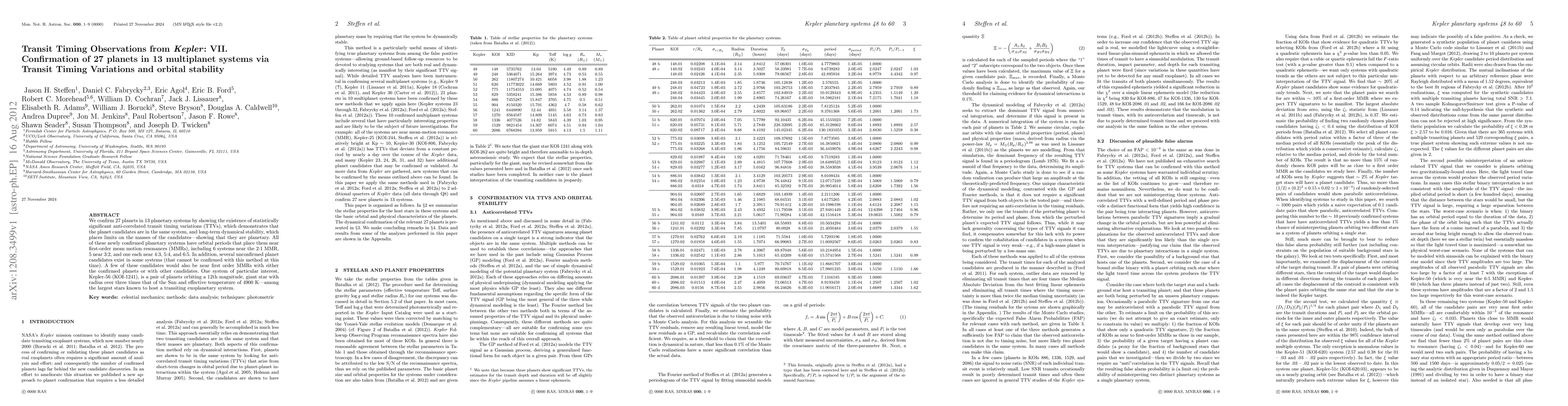 This paper confirms 27 planets in 13 multiplanet systems using transit timing variations and orbital stability analysis, demonstrating their dynamical coherence and planetary nature. Notably, several systems exhibit first-order mean motion resonances, including six near 2:1 and five near 3:2.