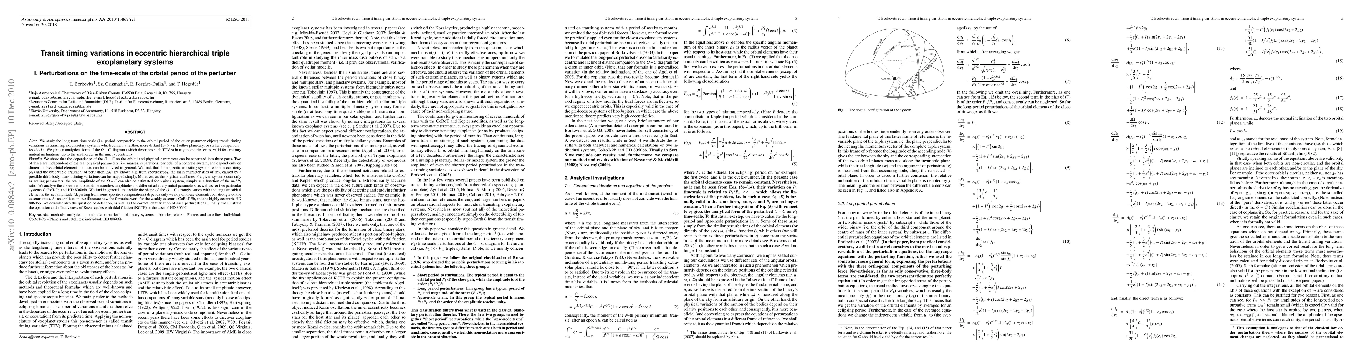 This research presents an analytical formula for transit timing variations (TTVs) in eccentric hierarchical triple exoplanetary systems. It identifies three components of the TTV signal, two of which are independent of system parameters. The study finds that while TTV shape varies with angular elements, its amplitude depends mainly on eccentricities. The methodology is illustrated using CoRoT-9b and HD 80606b, and the paper discusses detection and identification of such perturbations, along with the role of Kozai cycles with tidal friction.