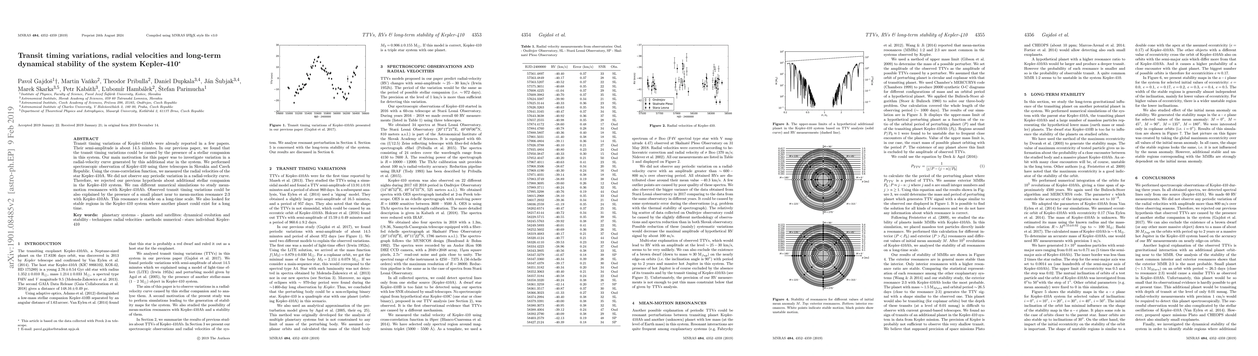 Transit timing variations of Kepler-410Ab were already reported in a few papers. Their semi-amplitude is about 14.5 minutes. In our previous paper, we found that the transit timing variations could be caused by the presence of a stellar companion in this system. Our main motivation for this paper was to investigate variation in a radial-velocity curve generated by this additional star in the system. We performed spectroscopic observation of Kepler-410 using three telescopes in Slovakia and Czech Republic. Using the cross-correlation function, we measured the radial velocities of the star Kepler-410A. We did not observe any periodic variation in a radial-velocity curve. Therefore, we rejected our previous hypothesis about additional stellar companion in the Kepler-410 system. We ran different numerical simulations to study mean-motion resonances with Kepler-410Ab. Observed transit timing variations could be also explained by the presence of a small planet near to mean-motion resonance 2:3 with Kepler-410Ab. This resonance is stable on a long-time scale. We also looked for stable regions in the Kepler-410 system where another planet could exist for a long time.