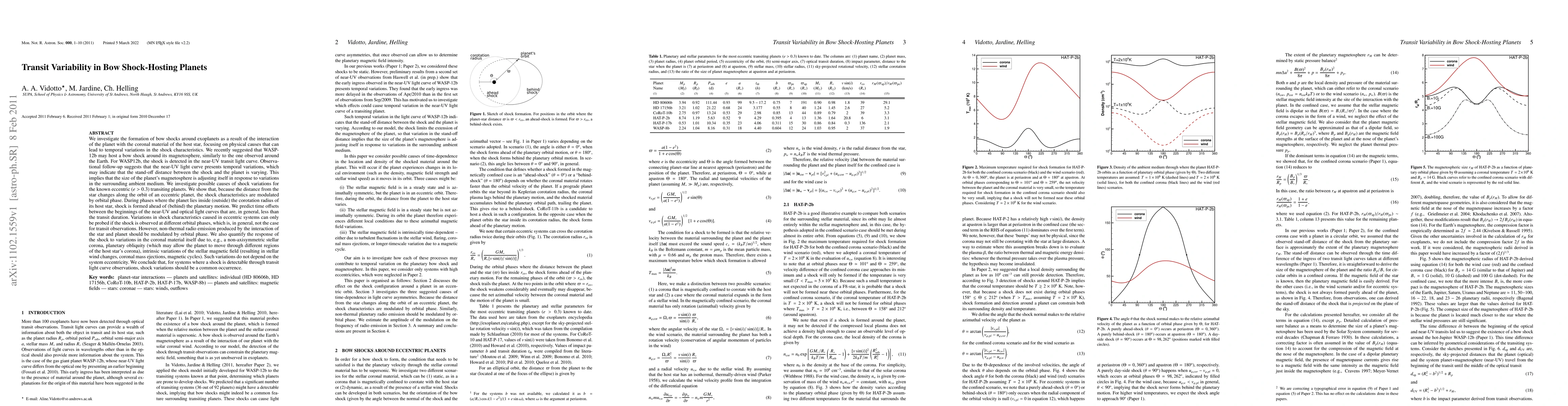 We investigate the formation of bow shocks around exoplanets as a result of the interaction of the planet with the coronal material of the host star, focusing on physical causes that can lead to temporal variations in the shock characteristics. We recently suggested that WASP-12b may host a bow shock around its magnetosphere, similarly to the one observed around the Earth. For WASP12b, the shock is detected in the near-UV transit light curve. Observational follow-up suggests that the near-UV light curve presents temporal variations, which may indicate that the stand-off distance between the shock and the planet is varying. This implies that the size of the planet's magnetosphere is adjusting itself in response to variations in the surrounding ambient medium. We investigate possible causes of shock variations for the known eccentric (e>0.3) transiting planets. We show that, because the distance from the star changes along the orbit of an eccentric planet, the shock characteristics are modulated by orbital phase. We predict time offsets between the beginnings of the near-UV and optical light curves that are, in general, less than the transit duration. Variations in shock characteristics caused in eccentric systems can only be probed if the shock is observed at different orbital phases, which is, in general, not the case for transit observations. However, non-thermal radio emission produced by the interaction of the star and planet should be modulated by orbital phase. We also quantify the response of the shock to variations in the coronal material itself due to, e.g., a non-axisymmetric stellar corona, planetary obliquity, intrinsic variations of the stellar magnetic field. Such variations do not depend on the system eccentricity. We conclude that, for systems where a shock is detectable through transit light curve observations, shock variations should be a common occurrence. (Abridged)