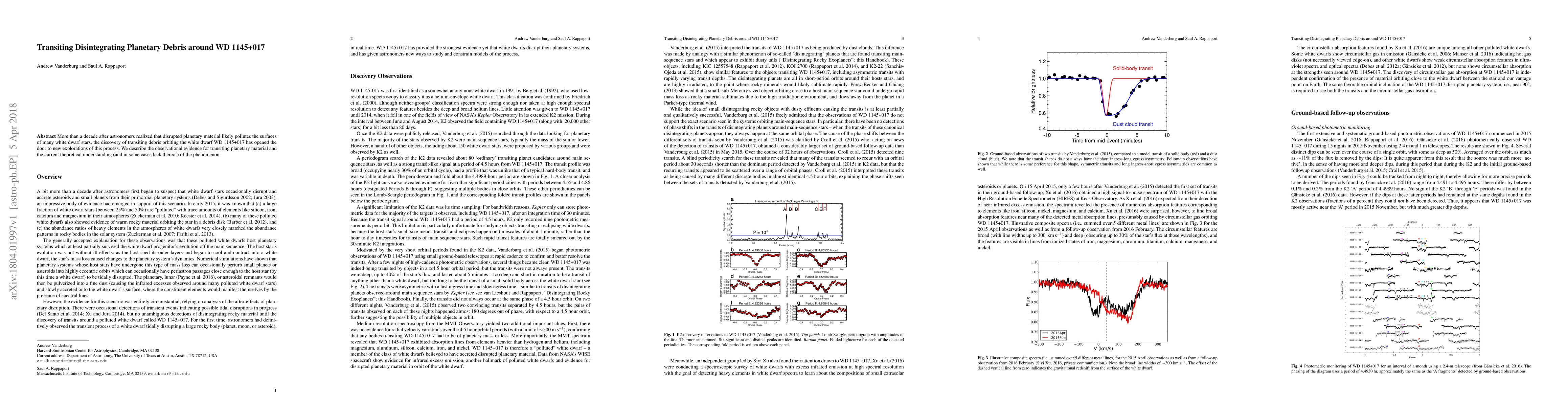 This paper discusses the discovery of transiting debris from a disintegrating planet around the white dwarf WD 1145+017, providing observational evidence and exploring the current theoretical understanding of this phenomenon. It highlights the significance of this finding for studying planetary disruption processes around white dwarfs.
