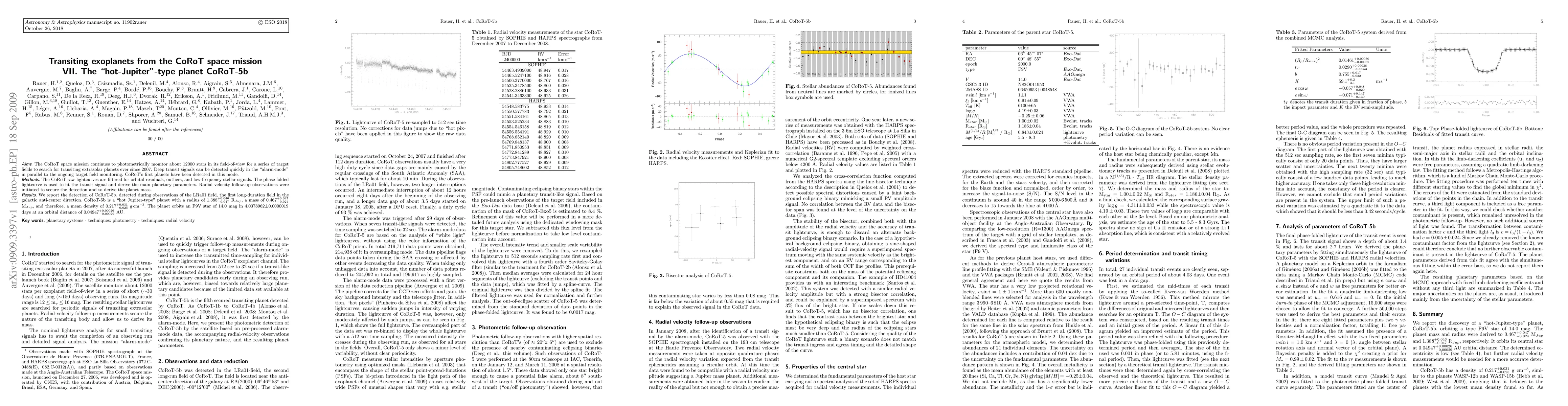 Aims. The CoRoT space mission continues to photometrically monitor about 12 000 stars in its field-of-view for a series of target fields to search for transiting extrasolar planets ever since 2007. Deep transit signals can be detected quickly in the "alarm-mode" in parallel to the ongoing target field monitoring. CoRoT's first planets have been detected in this mode. Methods. The CoRoT raw lightcurves are filtered for orbital residuals, outliers, and low-frequency stellar signals. The phase folded lightcurve is used to fit the transit signal and derive the main planetary parameters. Radial velocity follow-up observations were initiated to secure the detection and to derive the planet mass. Results. We report the detection of CoRoT-5b, detected during observations of the LRa01 field, the first long-duration field in the galactic anticenter direction. CoRoT-5b is a "hot Jupiter-type" planet with a radius of 1.388(+0.046, -0.047) R_Jup, a mass of 0.467(+0.047, -0.024) M_Jup, and therefore, a mean density of 0.217(+0.031, -0.025) g cm-3. The planet orbits an F9V star of 14.0 mag in 4.0378962 +/- 0.0000019 days at an orbital distance of 0.04947(+0.00026, -0.00029) AU.