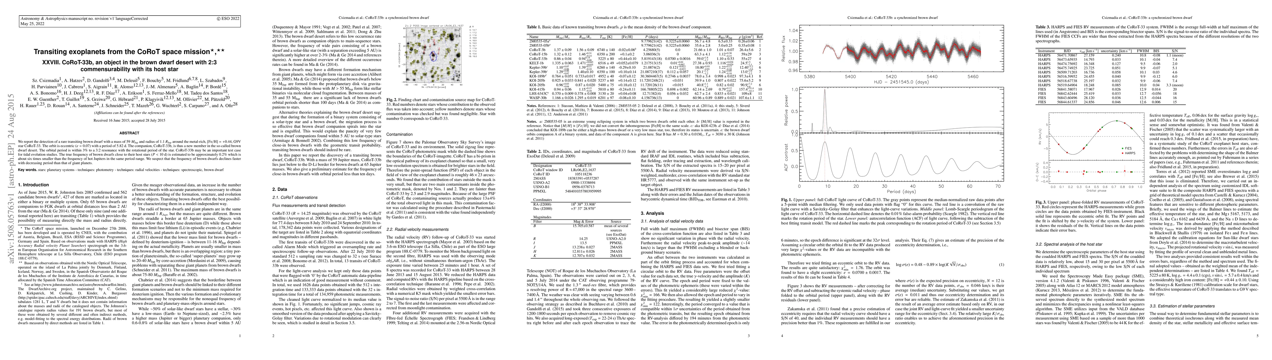 This paper reports the discovery of CoRoT-33b, a rare transiting brown dwarf with a mass of 59 M_Jup and a radius of 1.1 R_Jup, orbiting the G9V star CoRoT-33. CoRoT-33b resides in the "brown dwarf desert" and exhibits a 2:3 orbital commensurability with its host star, making it a significant object for studying tidal evolution.