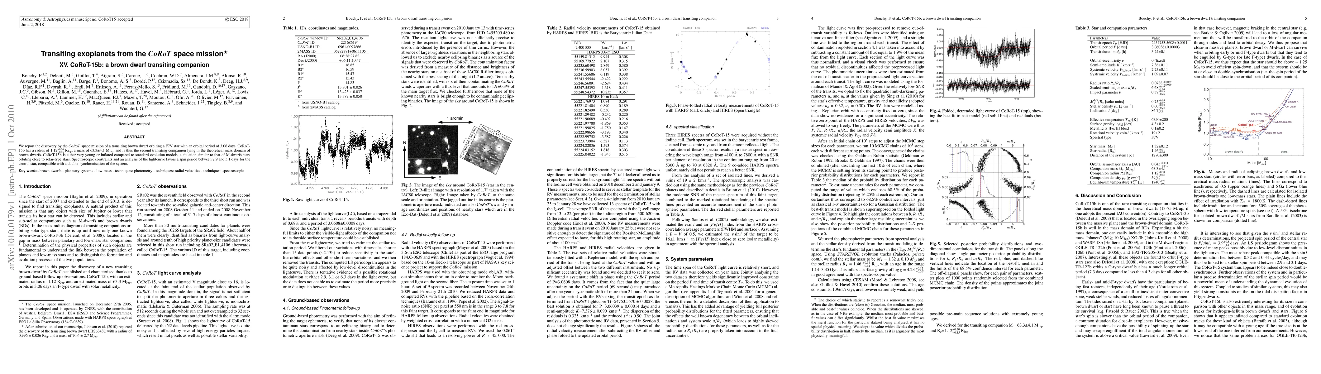 The CoRoT space mission discovered a transiting brown dwarf, CoRoT-15b, orbiting a F7V star with an orbital period of 3.06 days. CoRoT-15b, with a radius of 1.12 ± 0.30 Rjup, is the second transiting companion in the mass domain of brown dwarfs, suggesting it may be very young or inflated.