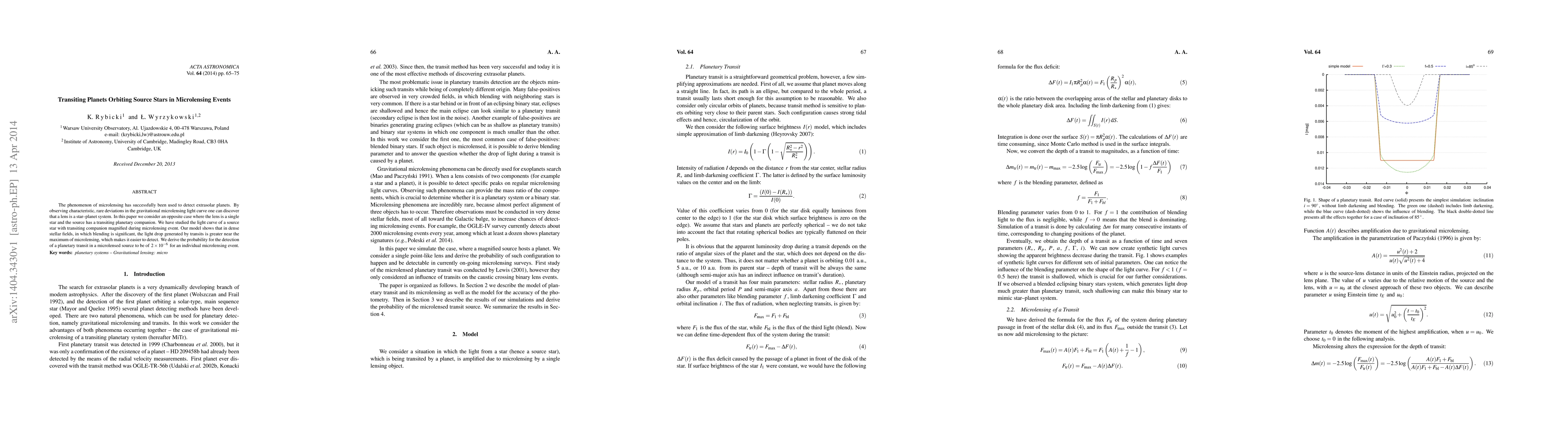 This paper explores the detection of transiting planets in microlensing events where the lens is a single star and the source has a transiting planet. The study finds that transit light drops are more pronounced near the peak of the microlensing event, enhancing detection chances in dense stellar fields, with a derived probability of 2*10^(-6) for detecting such a transit in a single microlensing event.