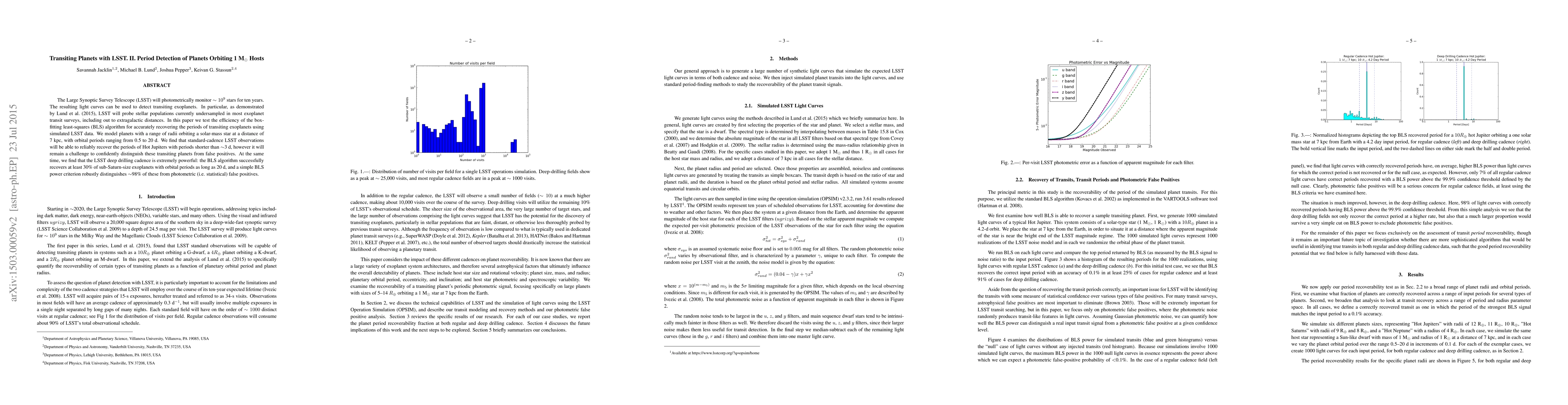 The Large Synoptic Survey Telescope (LSST) will photometrically monitor approximately 1 billion stars for ten years. The resulting light curves can be used to detect transiting exoplanets. In particular, as demonstrated by Lund et al. (2015), LSST will probe stellar populations currently undersampled in most exoplanet transit surveys, including out to extragalactic distances. In this paper we test the efficiency of the box-fitting least-squares (BLS) algorithm for accurately recovering the periods of transiting exoplanets using simulated LSST data. We model planets with a range of radii orbiting a solar-mass star at a distance of 7 kpc, with orbital periods ranging from 0.5 to 20 days. We find that standard-cadence LSST observations will be able to reliably recover the periods of Hot Jupiters with periods shorter than approximately 3 days, however it will remain a challenge to confidently distinguish these transiting planets from false positives. At the same time, we find that the LSST deep drilling cadence is extremely powerful: the BLS algorithm successfully recovers at least 30% of sub-Saturn-size exoplanets with orbital periods as long as 20 days, and a simple BLS power criterion robustly distinguishes approximately 98% of these from photometric (i.e. statistical) false positives.