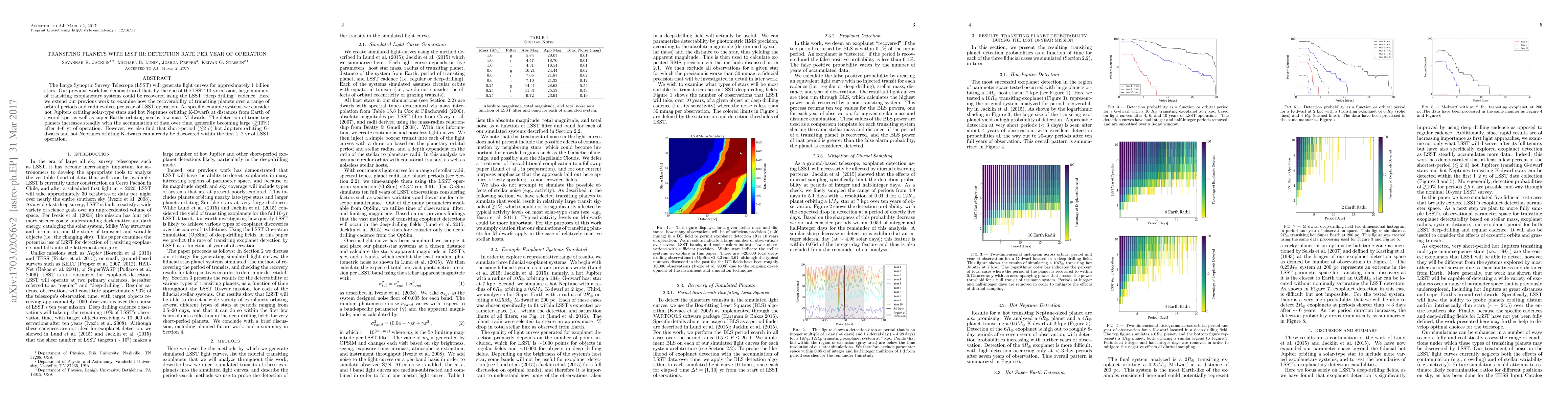 This paper examines the detection rate of transiting planets by the LSST over its operational years, finding that significant numbers of exoplanetary systems can be identified within the first 4-6 years, with short-period hot Jupiters and hot Neptunes detectable even within the first 1-2 years.