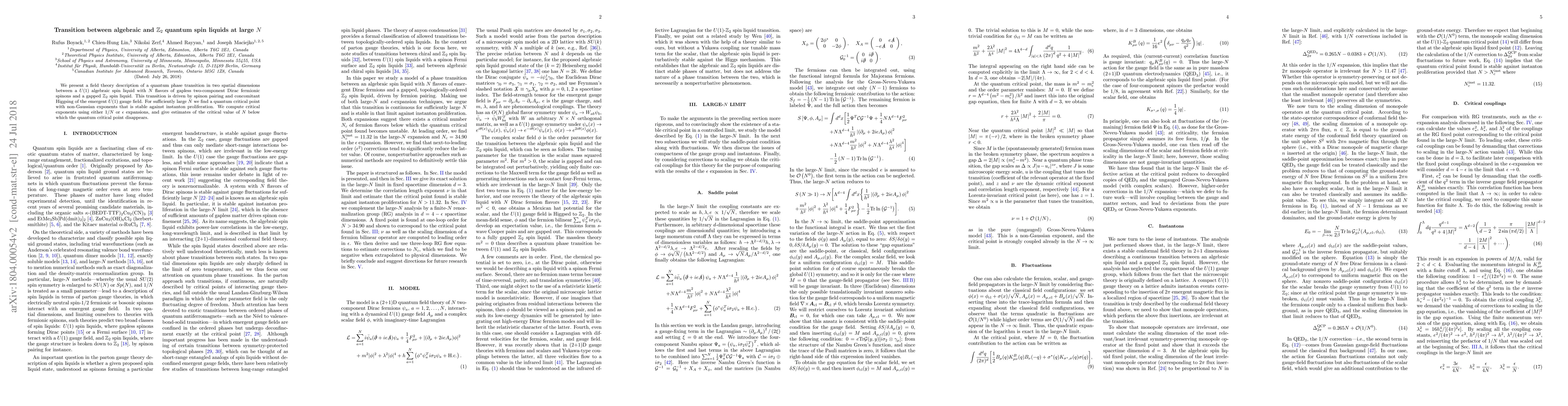 We present a field theory description of a quantum phase transition in two spatial dimensions between a $U(1)$ algebraic spin liquid with $N$ flavors of gapless two-component Dirac fermionic spinons and a gapped $\mathbb{Z}_2$ spin liquid. This transition is driven by spinon pairing and concomitant Higgsing of the emergent $U(1)$ gauge field. For sufficiently large $N$ we find a quantum critical point with non-Gaussian exponents that is stable against instanton proliferation. We compute critical exponents using either $1/N$ or $\epsilon$ expansions, and give estimates of the critical value of $N$ below which the quantum critical point disappears.