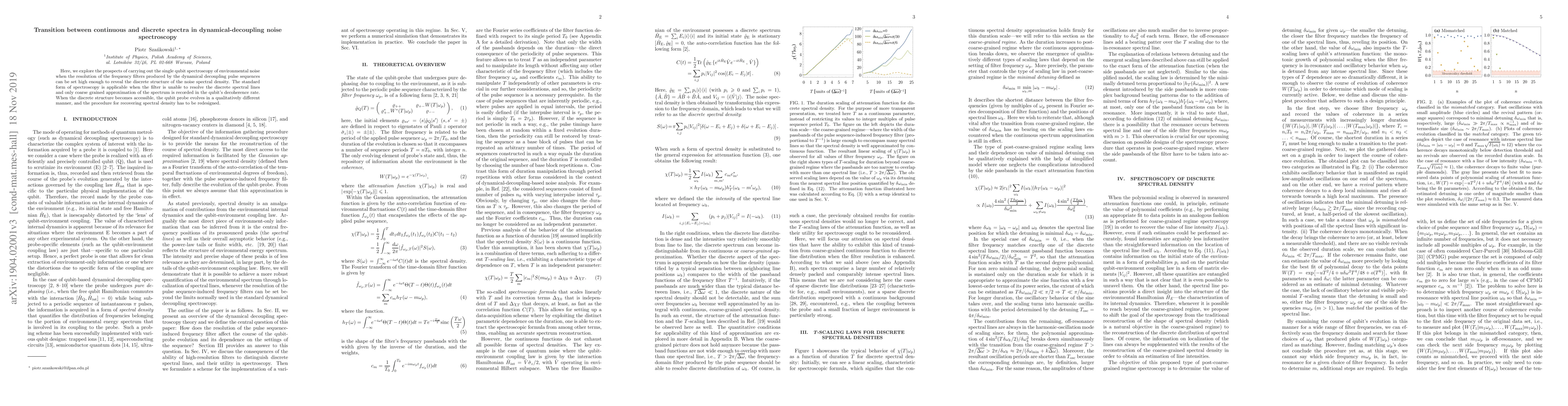 This paper investigates the transition from continuous to discrete spectral resolution in dynamical-decoupling noise spectroscopy, revealing how high-resolution filters can uncover the discrete structure of the noise spectral density, necessitating a redesign of the spectral density recovery procedure.