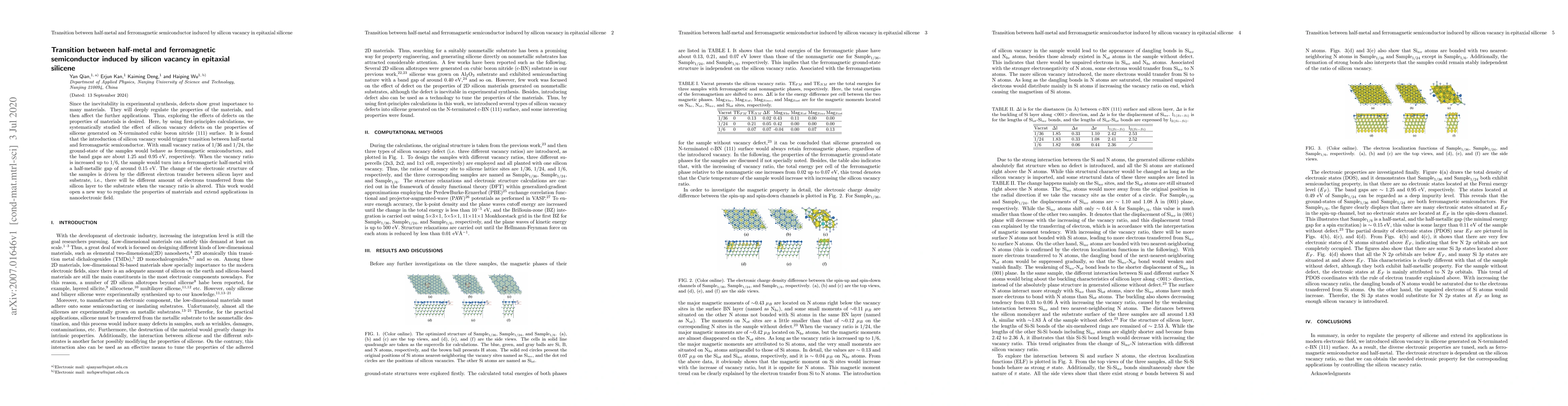 Researchers discovered that silicon vacancies can induce a transition between half-metal and ferromagnetic semiconductor properties in silicene, opening new possibilities for regulating material properties.