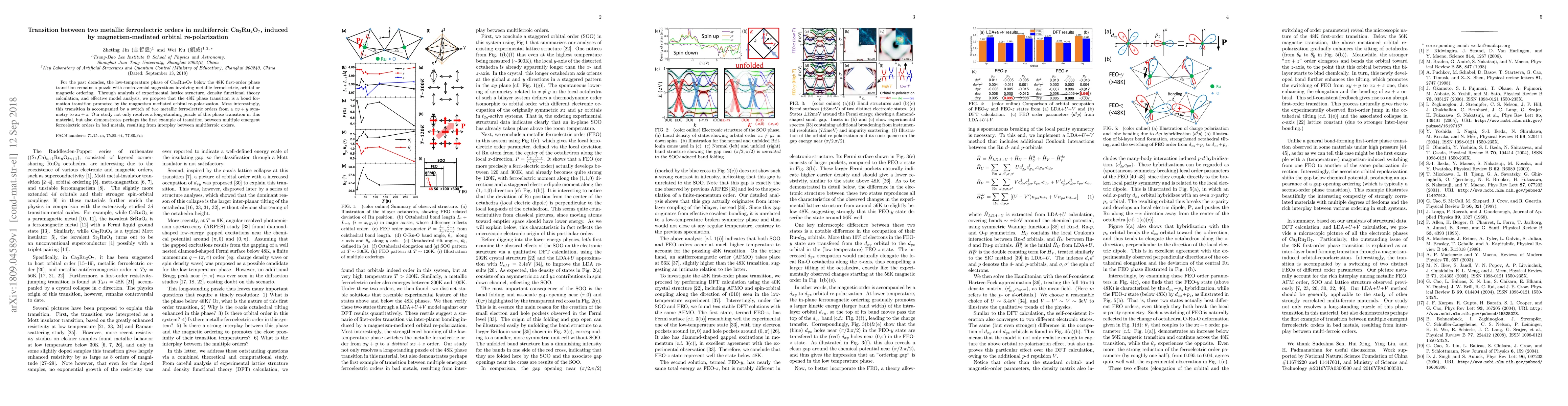 Researchers reveal that a phase transition in Ca3Ru2O7 is driven by magnetism-mediated orbital re-polarization, resulting in the emergence of two metallic ferroelectric orders with different symmetries.