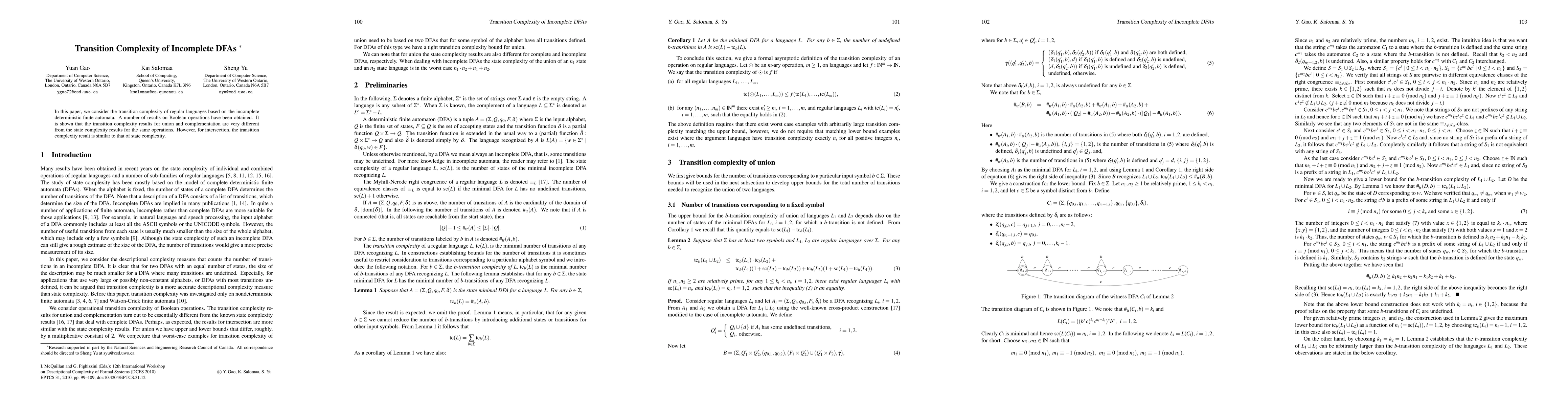 In this paper, we consider the transition complexity of regular languages based on the incomplete deterministic finite automata. A number of results on Boolean operations have been obtained. It is shown that the transition complexity results for union and complementation are very different from the state complexity results for the same operations. However, for intersection, the transition complexity result is similar to that of state complexity.
