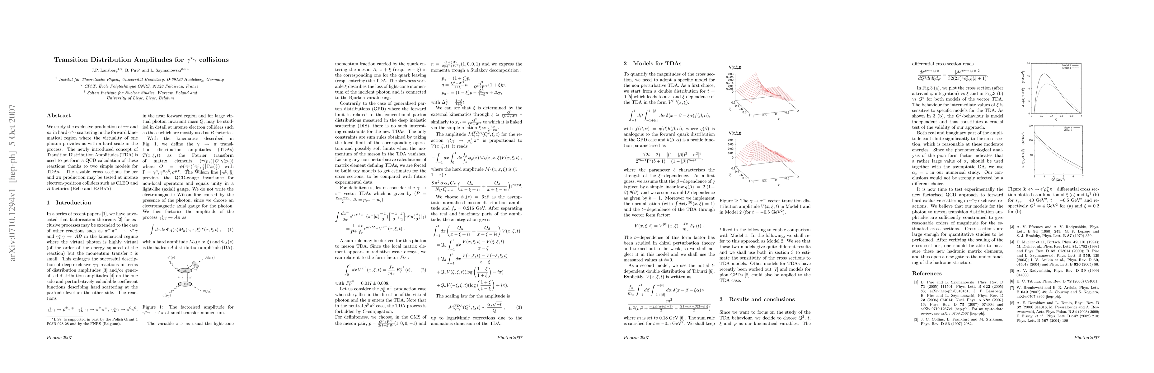 We study the exclusive production of pi-pi and rho-pi in hard gamma* gamma scattering in the forward kinematical region where the virtuality of one photon provides us with a hard scale in the process. The newly introduced concept of Transition Distribution Amplitudes (TDA) is used to perform a QCD calculation of these reactions thanks to two simple models for TDAs. The sizable cross sections for rho-pi and pi-pi production may be tested at intense electron-positron colliders such as CLEO and B factories (Belle and BaBar).