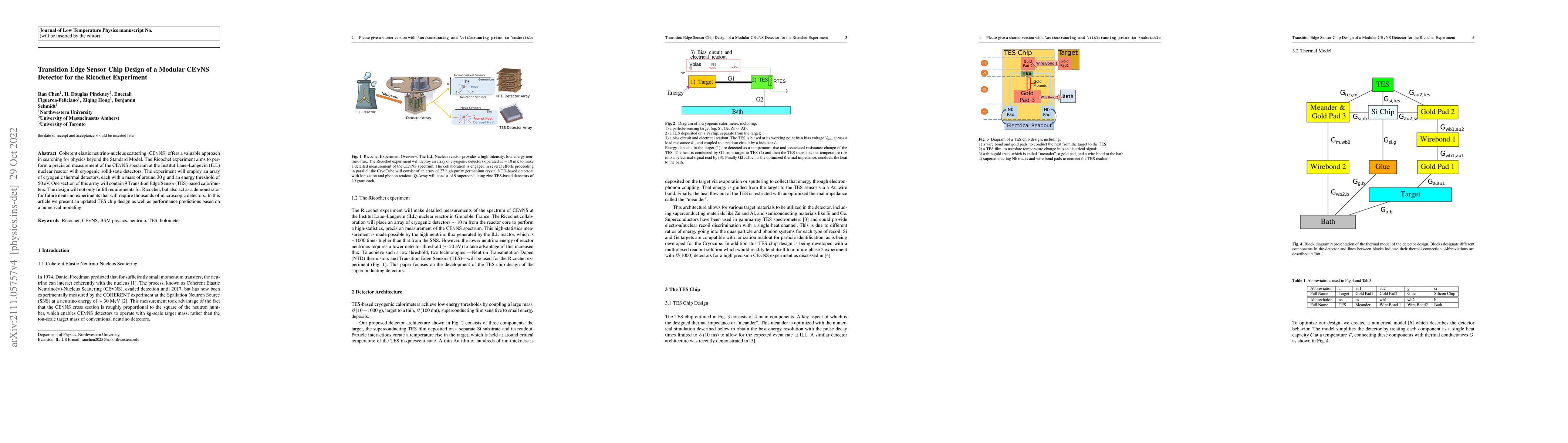 Coherent elastic neutrino-nucleus scattering (CE$\nu$NS) offers a valuable approach in searching for physics beyond the Standard Model. The Ricochet experiment aims to perform a precision measurement of the CE$\nu$NS spectrum at the Institut Laue-Langevin (ILL) nuclear reactor with cryogenic solid-state detectors. The experiment will employ an array of cryogenic thermal detectors, each with a mass of around 30 g and an energy threshold of 50 eV. One section of this array will contain 9 Transition Edge Sensor (TES) based calorimeters. The design will not only fulfill requirements for Ricochet, but also act as a demonstrator for future neutrino experiments that will require thousands of macroscopic detectors. In this article we present an updated TES chip design as well as performance predictions based on a numerical modeling.