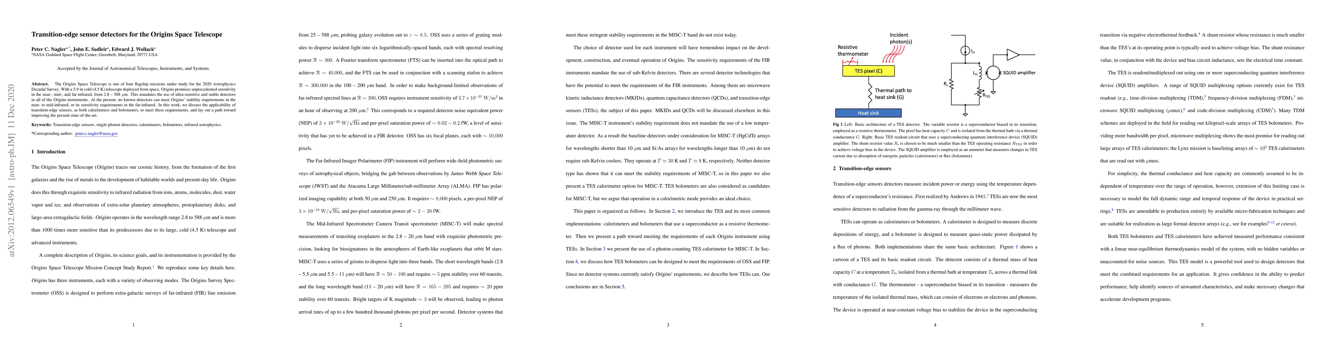This paper explores the use of transition-edge sensor detectors for the Origins Space Telescope, which aims to achieve unprecedented sensitivity in infrared wavelengths. It proposes that these sensors can fulfill the telescope's stringent stability and sensitivity requirements, and outlines strategies to enhance current detector technology.