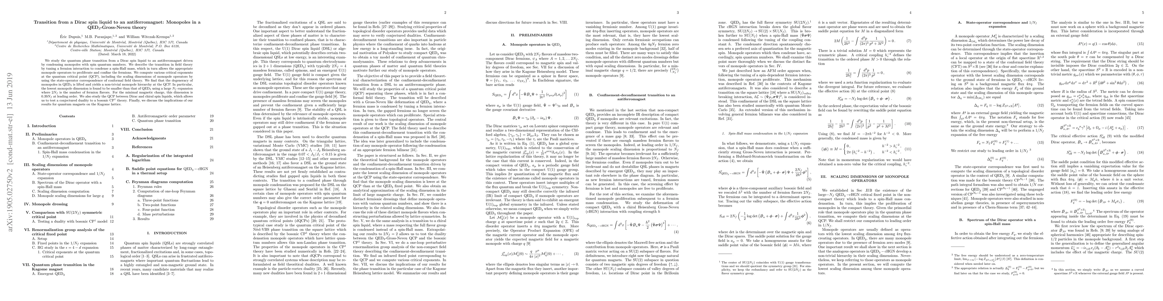 This paper investigates the quantum phase transition from a Dirac spin liquid to an antiferromagnet, driven by condensing monopoles. It employs a QED3-Gross-Neveu field theory to describe the transition and computes critical exponents, revealing a non-trivial monopole hierarchy at the quantum critical point.