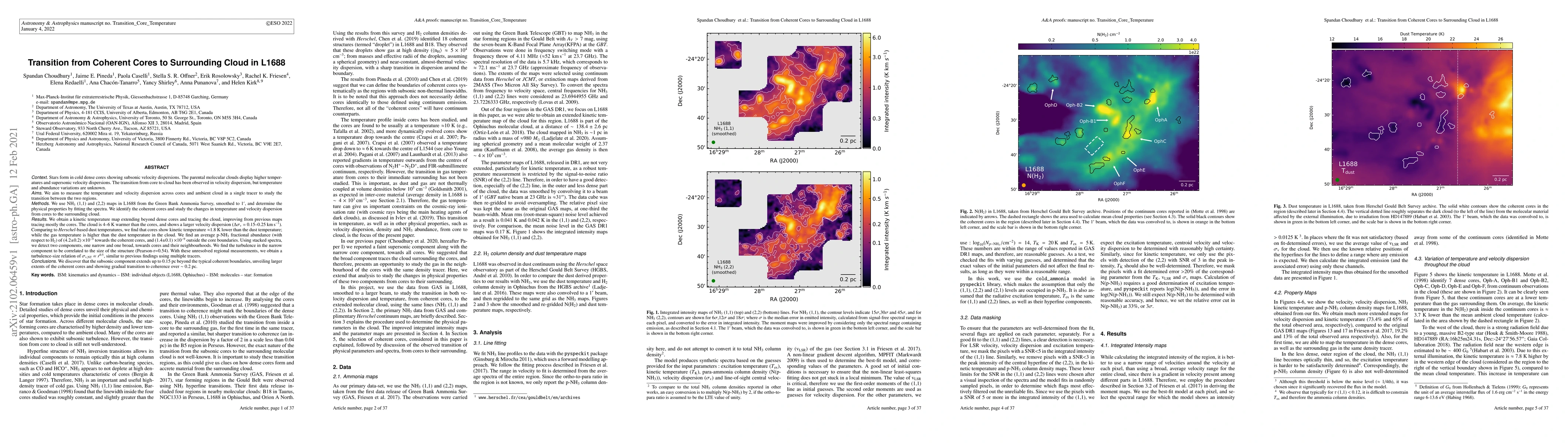 This study examines the transition from star-forming cores to surrounding clouds in L1688, using ammonia (NH3) data. Key findings include warmer cloud temperatures (4-6K more), higher velocity dispersions, and distinct ammonia fractional abundances within and outside coherent cores. The research also identifies two turbulence components, one correlated with structure size, revealing extended coherent core regions gradually transitioning over ~0.2 pc.