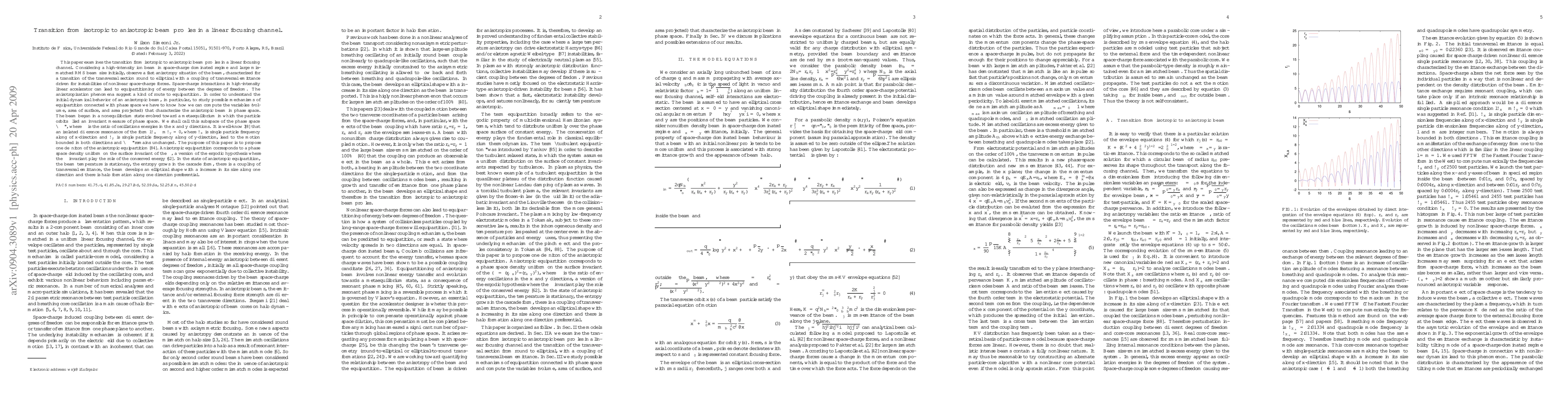This paper investigates the transition of high-intensity ion beams from isotropic to anisotropic profiles in a linear focusing channel, highlighting the coupling of transversal emittance and the development of elliptical beam shapes due to nonlinear space-charge forces. It proposes an anisotropic equipartition definition, suggesting a route to energy equipartition in phase space.