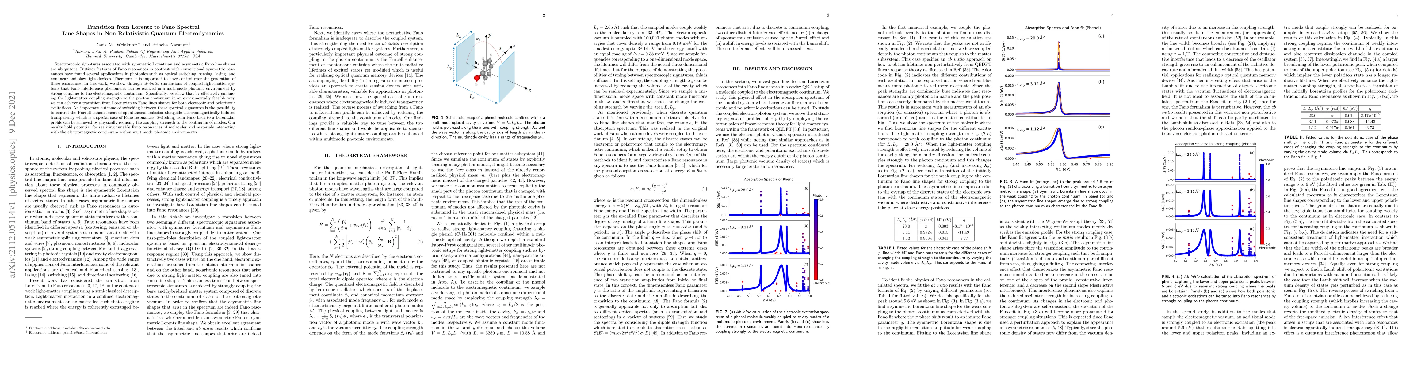 This paper demonstrates through ab initio simulations that strong coupling to the electromagnetic continuum can induce a transition from Lorentzian to Fano spectral line shapes in non-relativistic quantum electrodynamics, enabling control over Purcell enhancement and electromagnetically induced transparency in photonic systems. The findings suggest potential for tunable Fano resonances in multimode photonic environments.