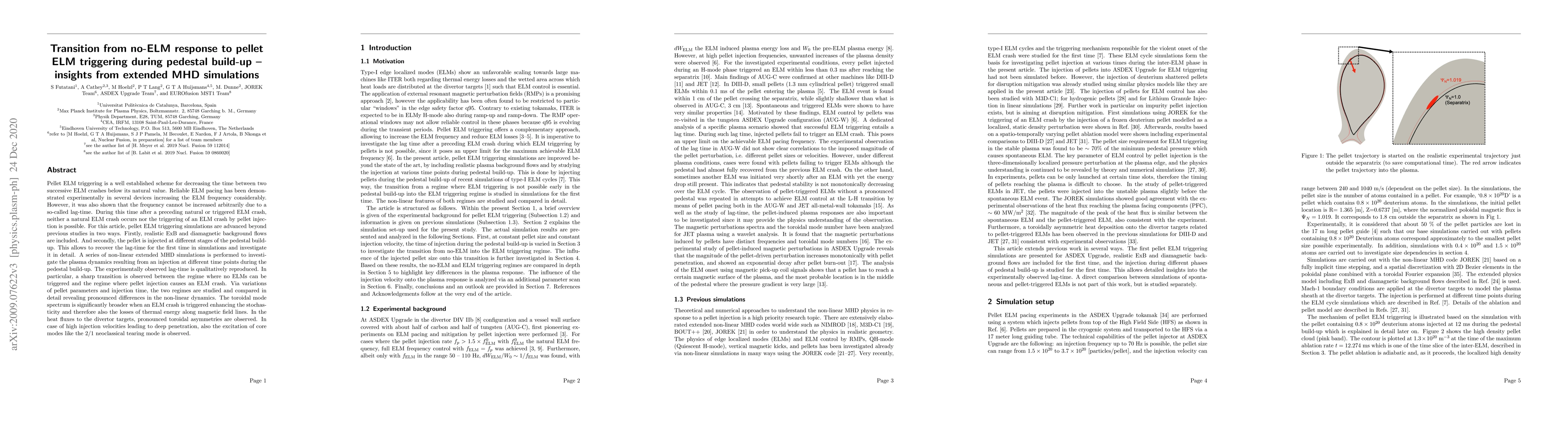 This paper investigates the transition from no-ELM response to pellet ELM triggering during pedestal build-up using extended MHD simulations. The study reveals a sharp transition between regimes where ELMs cannot be triggered and those where they are, with significant differences in non-linear dynamics and enhanced thermal energy losses.