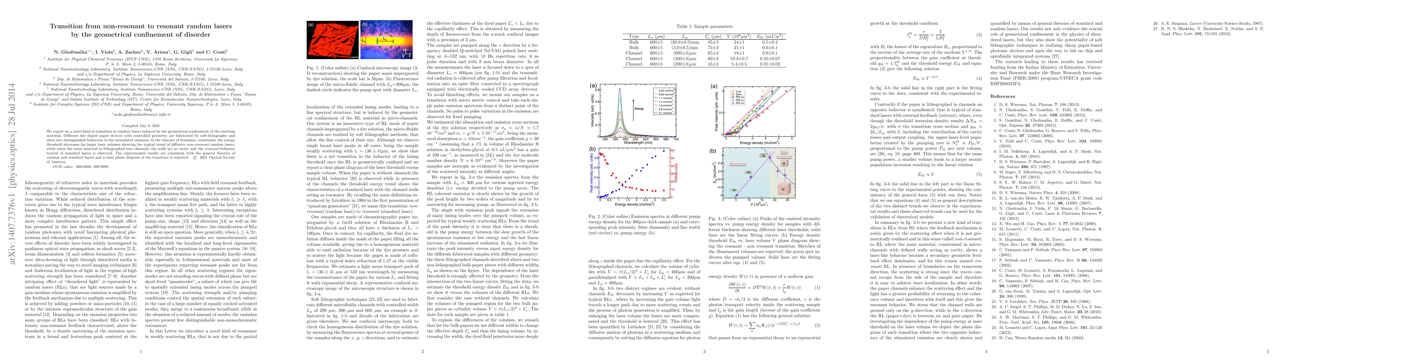 Researchers discovered a novel transition in random lasers where geometrical confinement of material leads to resonant behavior, unlike non-resonant behavior seen with unconfined materials.