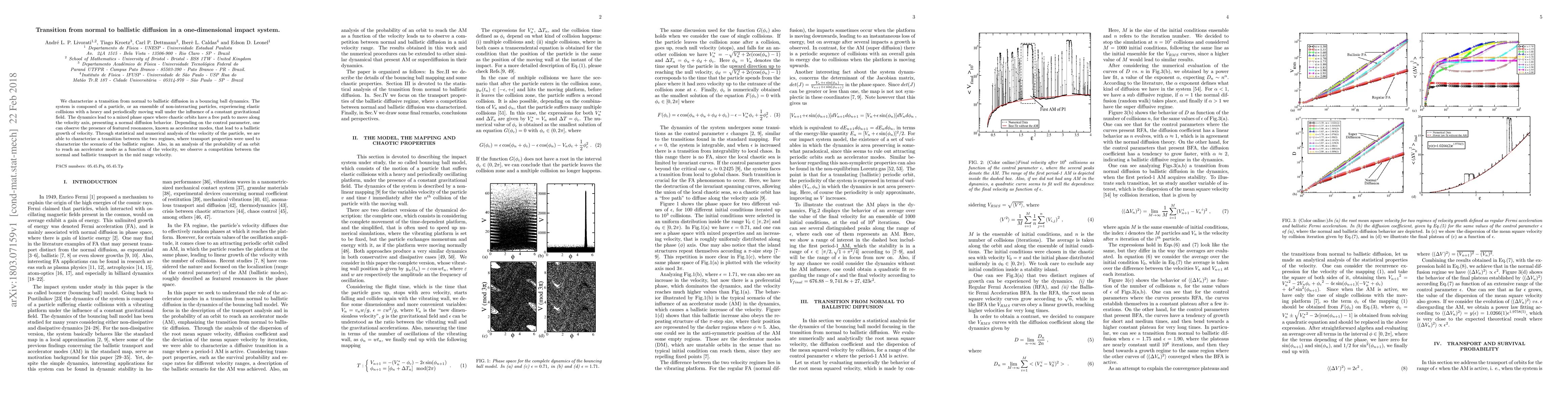 This paper investigates the transition from normal to ballistic diffusion in a one-dimensional impact system, where particles collide elastically with a periodically moving wall. The study reveals how chaotic orbits lead to normal diffusion, while accelerator modes cause ballistic velocity growth, characterized through statistical and numerical analysis.